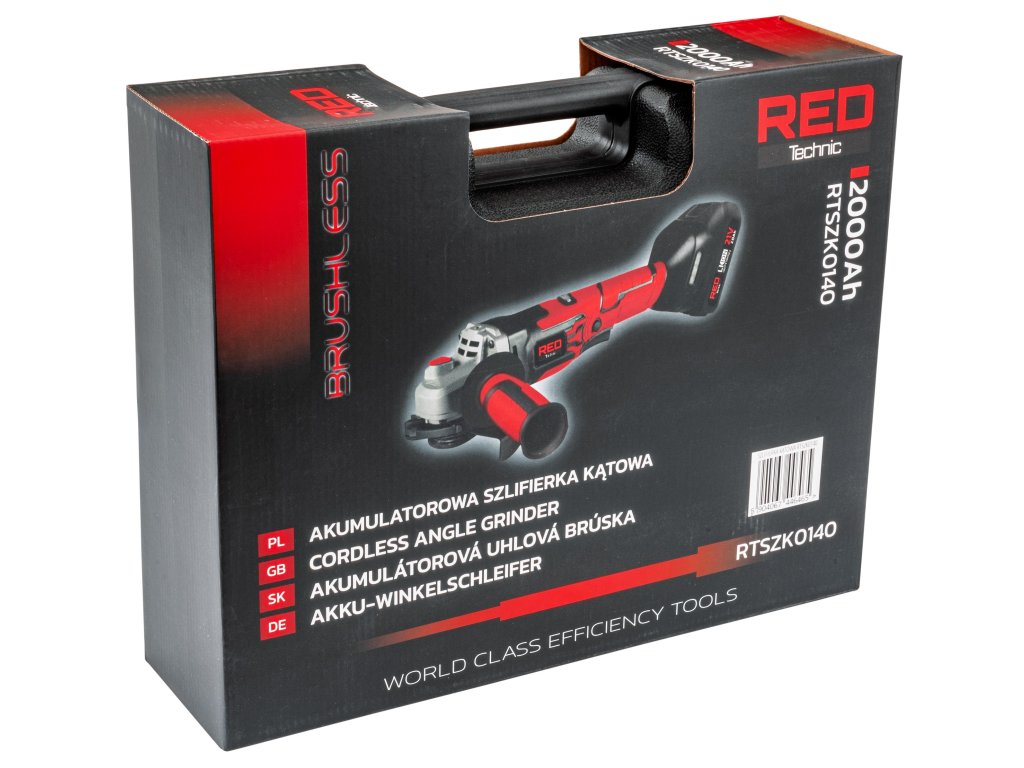 Akumulátorová úhlová bruska RTSZK0140 + 2x AKU 21V, RED Technic RTSZK0140