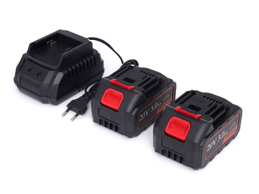 - Výkonné baterie: Dvě baterie 3,0 Ah s napětím 20 V poskytují dostatečnou energii pro dlouhou dobu provozu.
