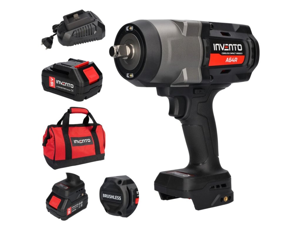 Akumulátorový rázový utahovák Invento A64R 1/2" 1880 Nm – sada 2× 5 Ah, taška a nabíječka