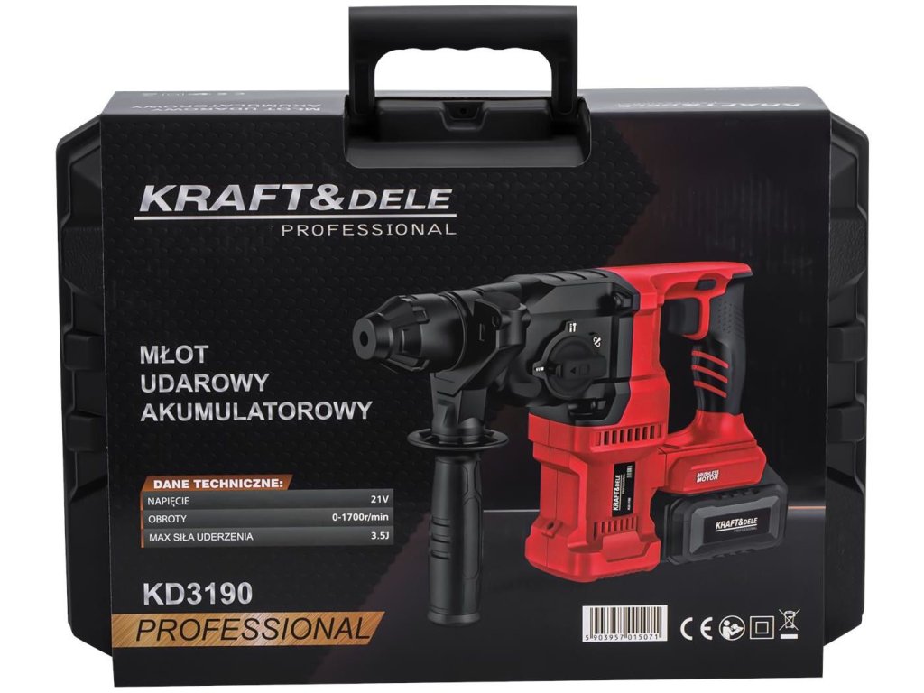 Aku kladivo Kraft&Dele KD3190 je výkonný a univerzální stroj určený pro náročné stavební a renovační práce. Díky napětí 21V a energii úderu 3,5 J si poradí s vrtáním a sekáním do betonu, zdiva i dalších tvrdých materiálů.