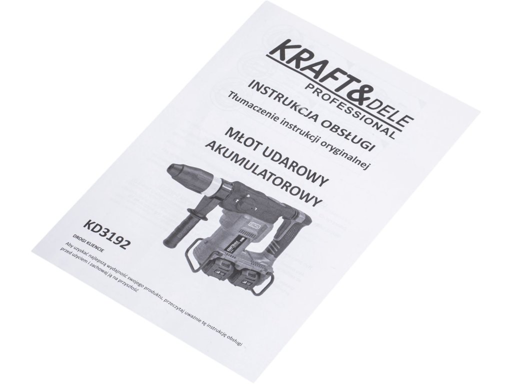 Aku kladivo Kraft&Dele KD3192 je výkonný stroj určený pro nejnáročnější stavební a renovační práce. Díky použití dvou akumulátorů současně pracuje při napětí 42V a dosahuje energie úderu až 10 J, což z něj dělá silného pomocníka při vrtání i sekání do betonu, cihel nebo jiných tvrdých materiálů.