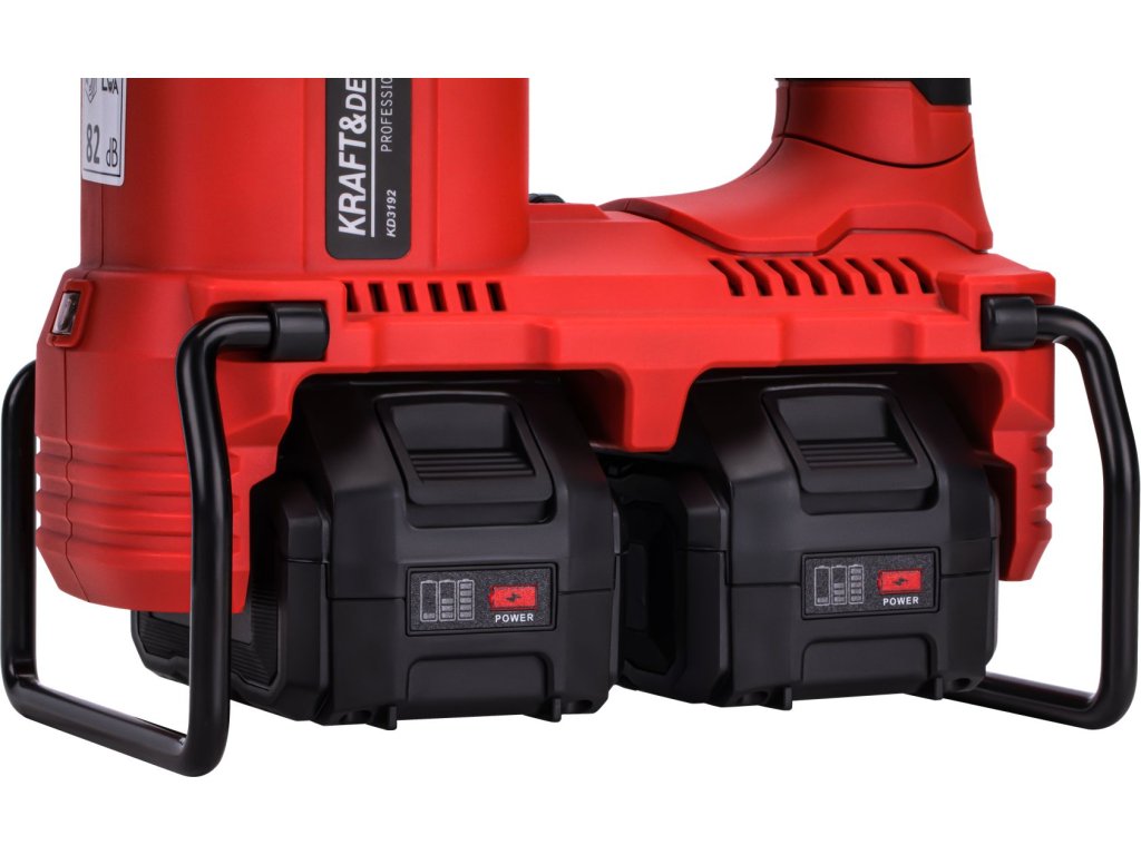 - 2× akumulátor 4Ah – dlouhá doba práce bez nutnosti dobíjení