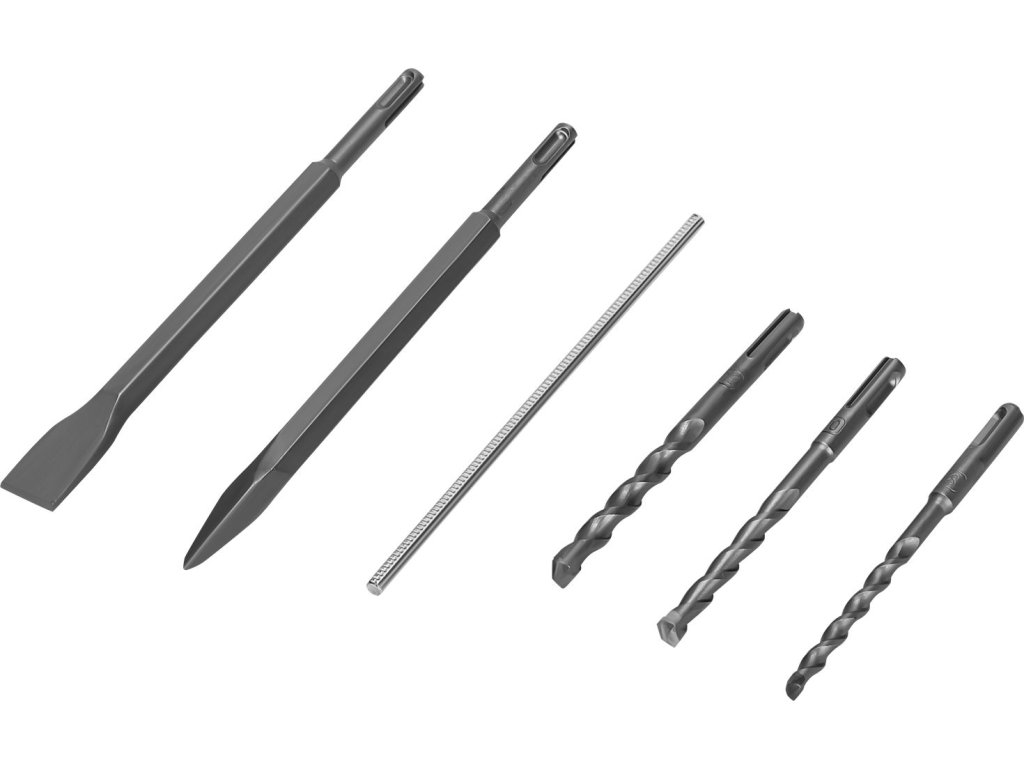 Zařízení je vybaveno systémem uchycení SDS-PLUS, který umožňuje rychlou a beznástrojovou výměnu příslušenství. Síla úderu 4,5J a otáčky až 1550 rpm umožňují přesnou a efektivní práci i v těch nejtvrdších materiálech.