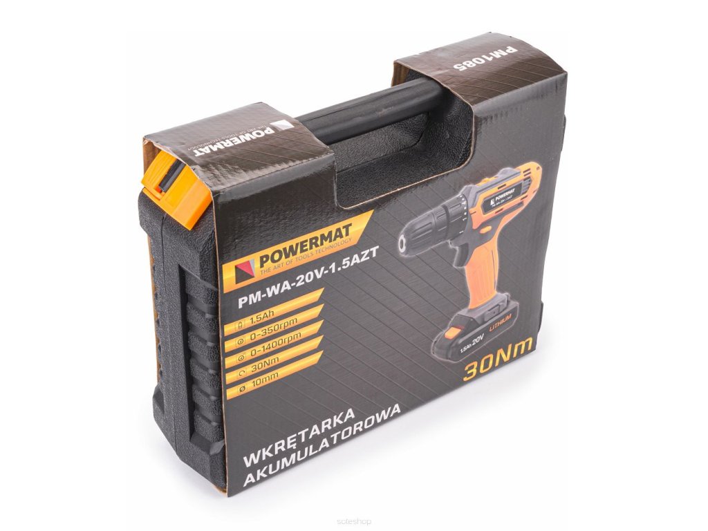 AKU vrtací šroubovák PM-WA-20V-1.5AZT, Powermat PM1085 je ideální pro profesionální i domácí použití, poskytuje vysokou flexibilitu a efektivitu při montážních a instalačních pracích.