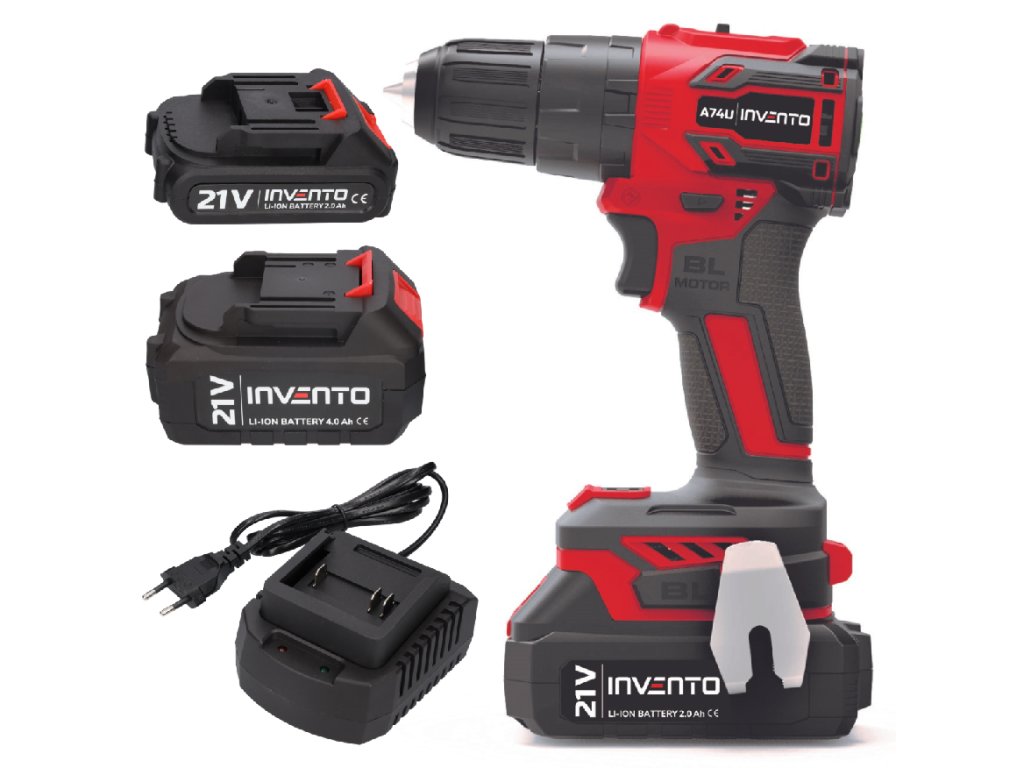 Akumulátorová příklepová vrtačka 3/8" Invento A74U – sada 2 Ah / 4 Ah + nabíječka + kufr