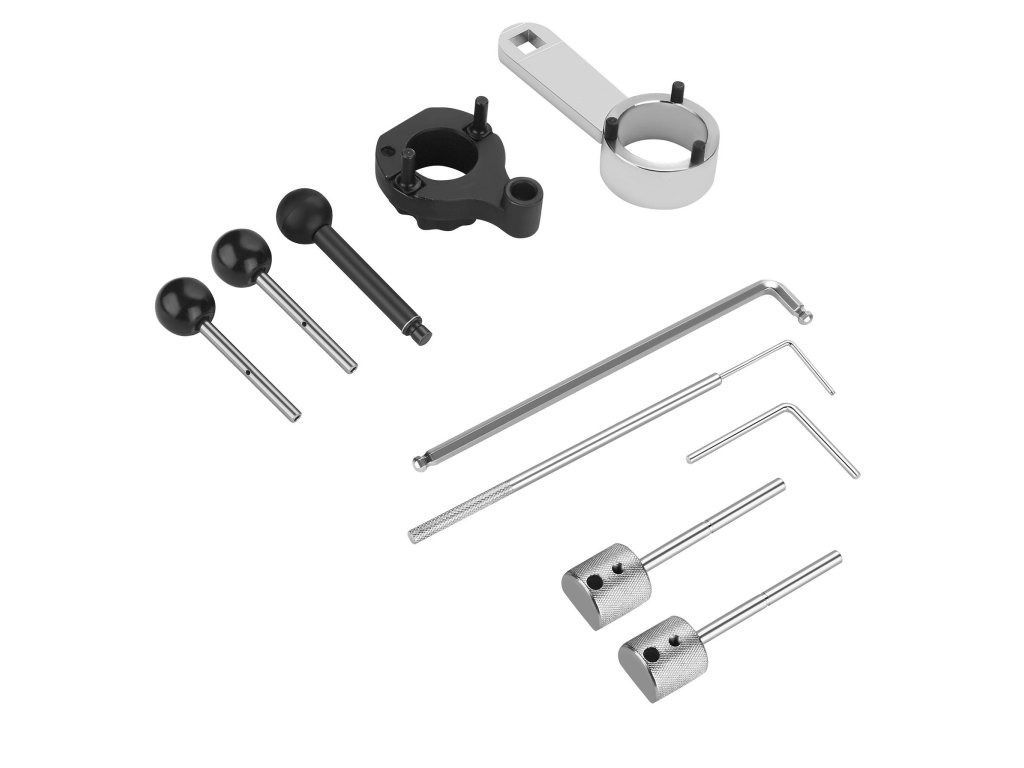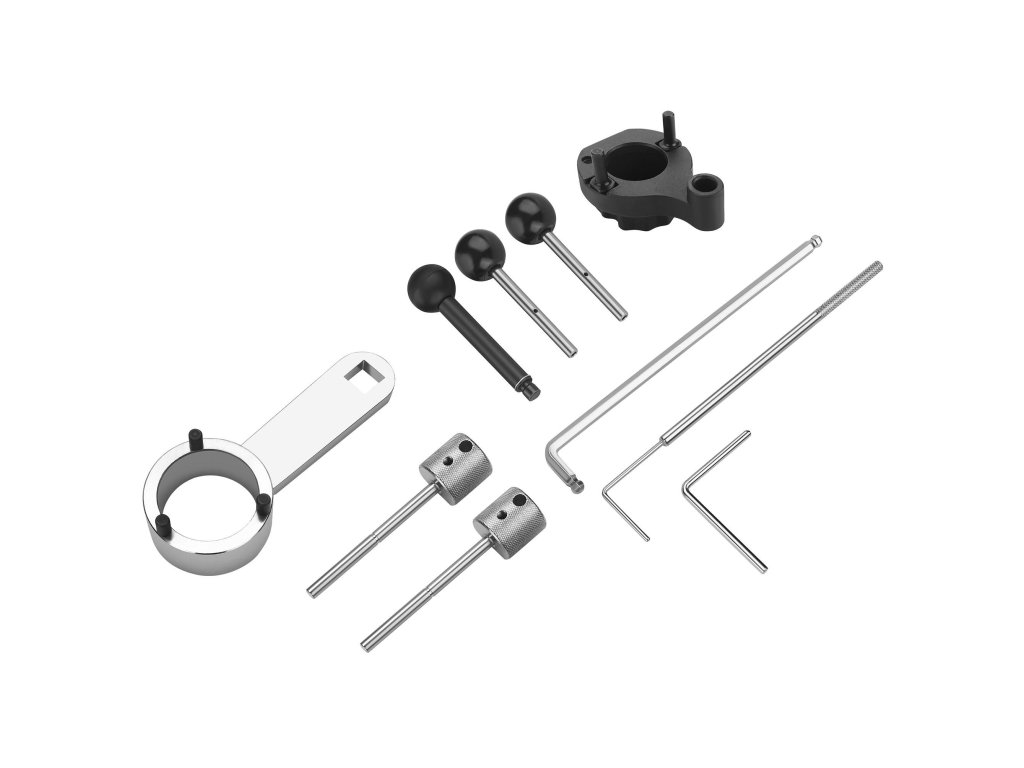 Nástroje jsou vyrobeny z kvalitní tvrzené oceli, která zaručuje odolnost a dlouhou životnost. Přesné provedení a kompatibilita s uvedenými jednotkami usnadňuje práci mechanikům i domácím uživatelům a eliminuje riziko chyb při výměně rozvodového řemene.