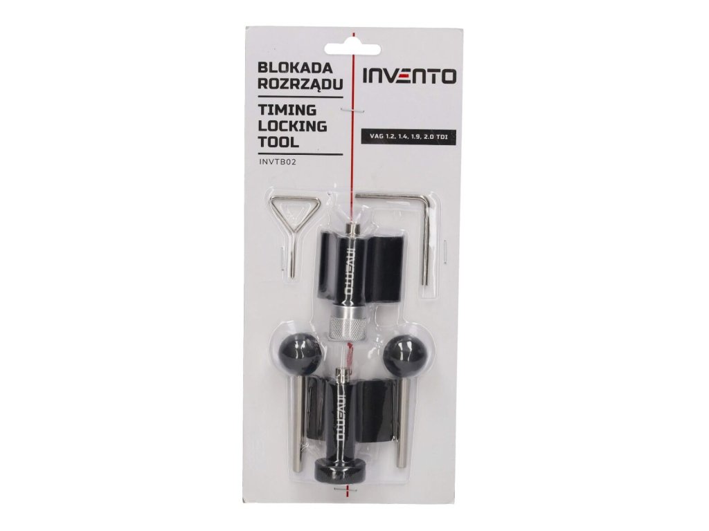 Profesionální blokovací sada značky INVENTO určená pro aretaci rozvodových mechanismů v dieselových motorech 1.2 / 1.4 / 1.9 / 2.0 TDI PD a SDI koncernu VW. Nástroje umožňují přesné zajištění klikového a vačkového hřídele, napínáku řemenu a dalších prvků během výměny rozvodového řemenu či jiných servisních prací.