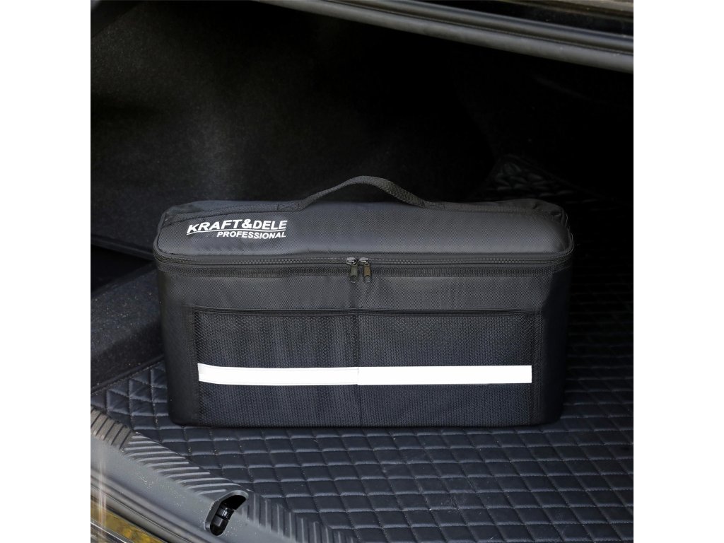 Organizér do auta Kraft&Dele KD11883 je praktickým pomocníkem pro udržení pořádku v kufru každého vozidla. Díky zipovému uzavírání bezpečně chrání uložené předměty před vypadnutím. Prostorné vnitřní uspořádání umožňuje přehledné uložení nákupů, nářadí, automobilového příslušenství nebo turistického vybavení.
