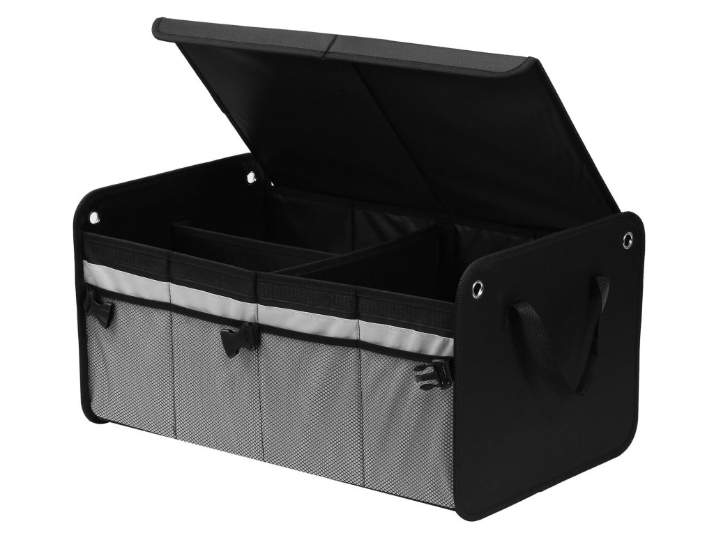 Organizér je vyroben z odolných materiálů a jeho zesílené švy, dno i boční stěny zajišťují dlouhou životnost. Tři velké přihrádky a čtyři doplňkové kapsy poskytují dostatek prostoru pro přehledné rozdělení uložených předmětů. Pevné rukojeti usnadňují přenášení a přezky umožňují bezpečné sepnutí organizéru po složení. Moderní a univerzální vzhled zaručuje, že KD11881 skvěle zapadne do každého automobilu.