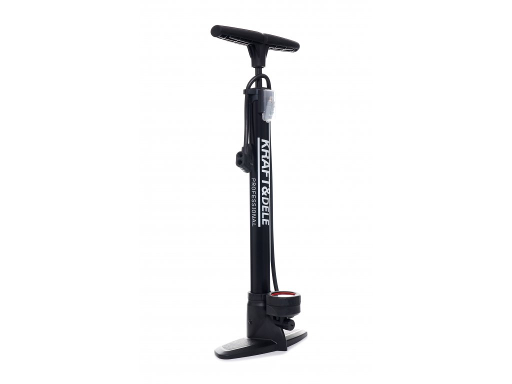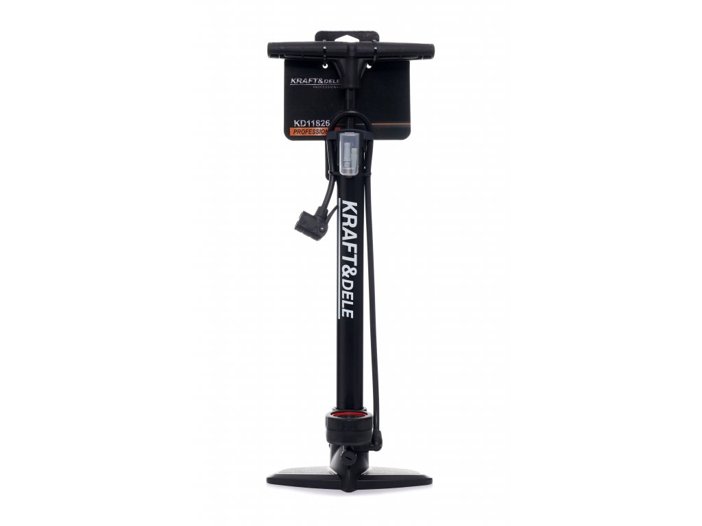 Sloupová pumpa na kolo s manometrem od značky Kraft&Dele, model K11826, je určena pro rychlé nafouknutí, nebo doplnění vzduchu v pneumatikách kola. Dvojitá hlavice je kompatibilní se všemi typy ventilů AV (Schrader), DV (Dunlop), FV (Presta). Sloupový design zajišťuje stabilitu a pohodlí při pumpování. Obsahuje integrovaný manometr pro přesné měření tlaku v nafukovaném objektu.