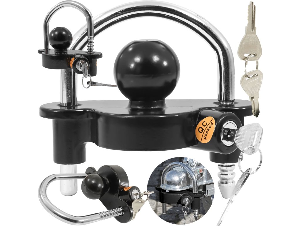 Univerzální bezpečnostní zámek značky Verke slouží jako účinná ochrana proti krádeži přívěsu. Jedná se o blokaci typu U, která se nasazuje na odpojený kulový závěs přívěsu a zabraňuje jeho neoprávněnému připojení.