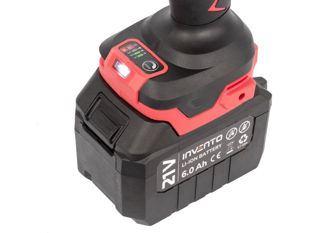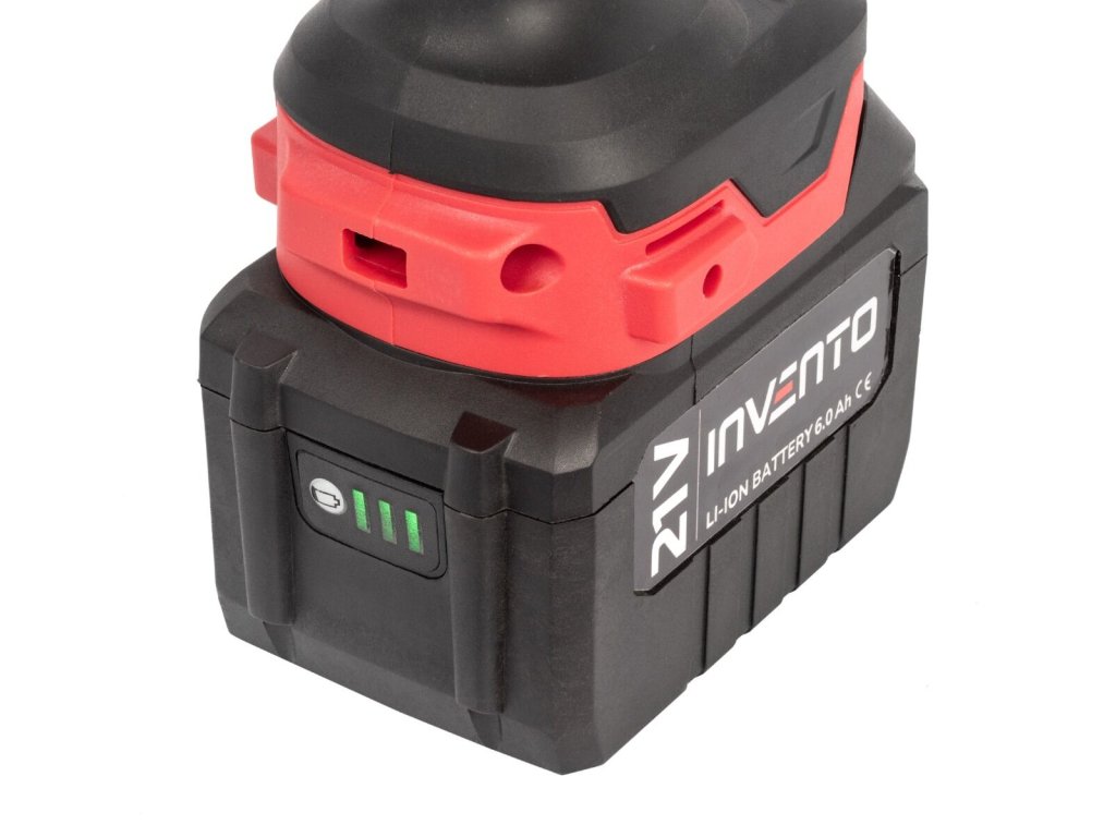 Akumulátor INVENTO s kapacitou 6 Ah je ideální volbou pro uživatele, kteří hledají nízkou hmotnost a kompaktní rozměry bez kompromisu v kvalitě. Díky nižší kapacitě článku je baterie mimořádně lehká, a proto se hodí především pro delší práce, kde hraje roli nízké zatížení ruky a maximální obratnost nástroje.