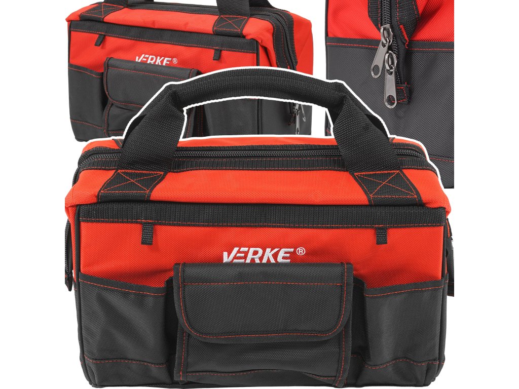 Brašna na nářadí Verke je ideální pro ukládání a přepravu nářadí a příslušenství na staveništi, v garáži nebo dílně. Vyznačuje se menšími rozměry a pevnou konstrukcí, což z ní činí velmi praktickou a pohodlnou brašnu. Disponuje vnitřními a vnějšími kapsami pro uložení šroubováků, kleští a dalších malých nástrojů. Velká komora uzavíratelná na zip zajišťuje pohodlný přístup k nářadí. Švy a hlavní zip jsou zesílené a přizpůsobené pro velké zatížení. Materiál polyester 1680D. Tkaniny s vazbou 1680D patří mezi nejodolnější a nejtrvanlivější materiály. Hustá gramáž zajišťuje výrobkům výjimečnou odolnost proti různým druhům mechanického poškození. Tkaniny se vyznačují výraznou strukturou vazby a mají dodatečný PU povlak. Tento způsob impregnace posiluje materiál a dodává tkanině vlastnosti odolné proti vodě.