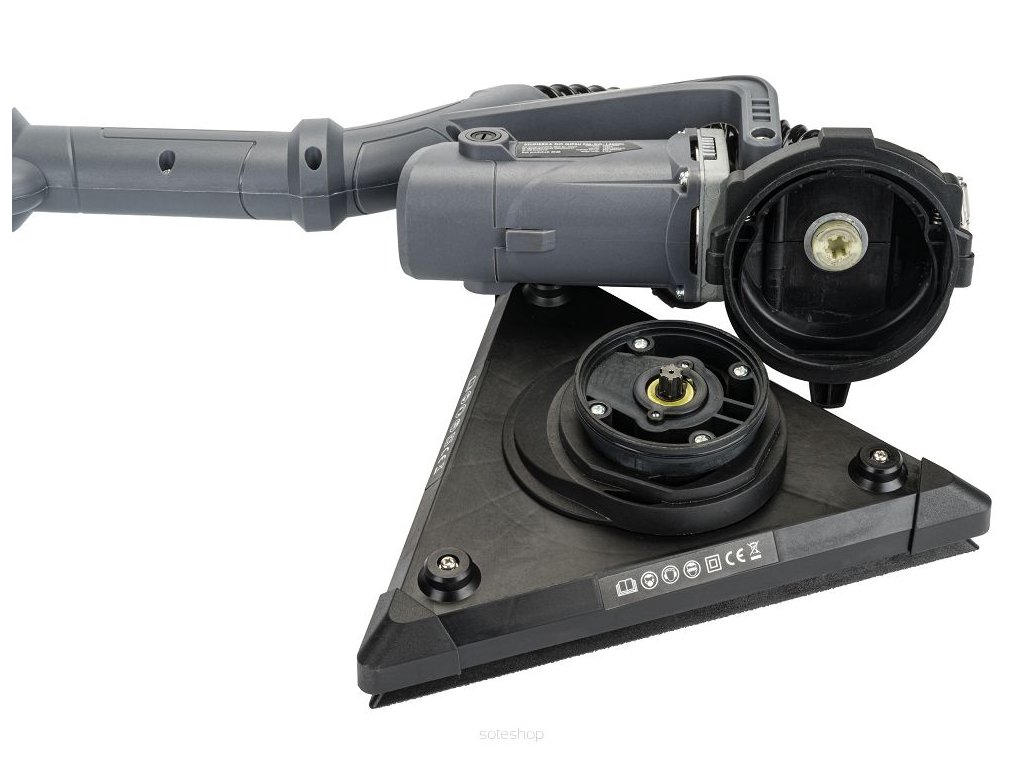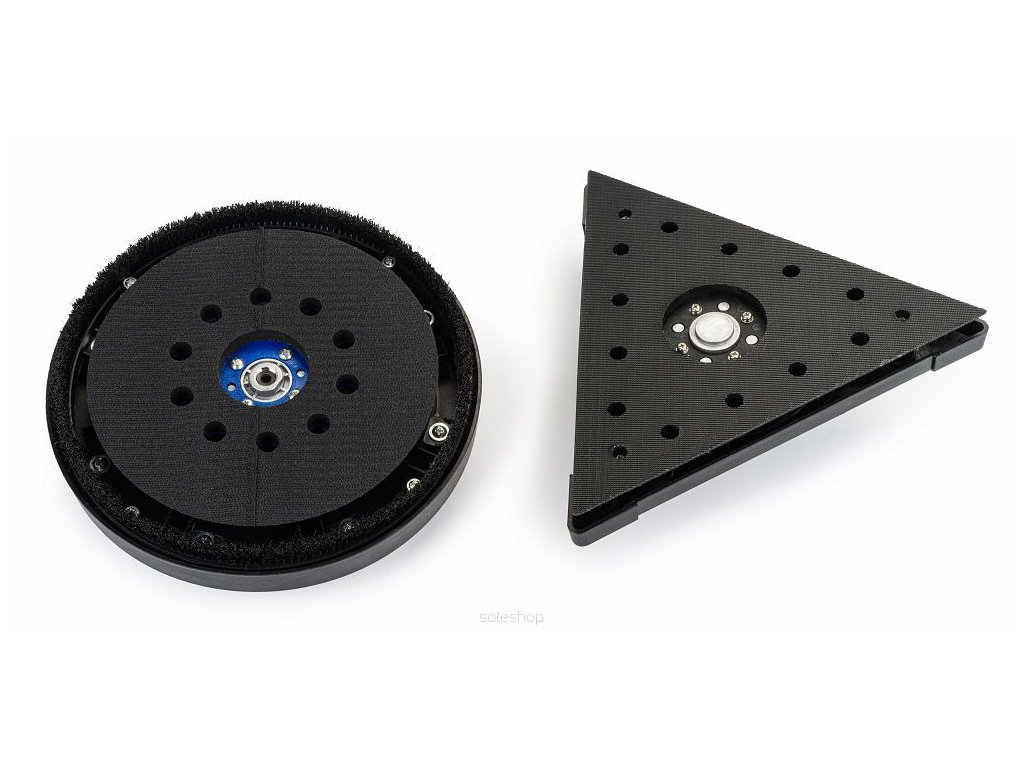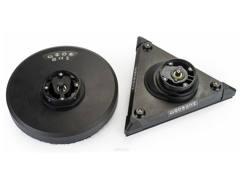 - Bruska je vybavena dvěma hlavicemi, trojúhelníkovou a kruhovou, které lze snadno vyměnit.
