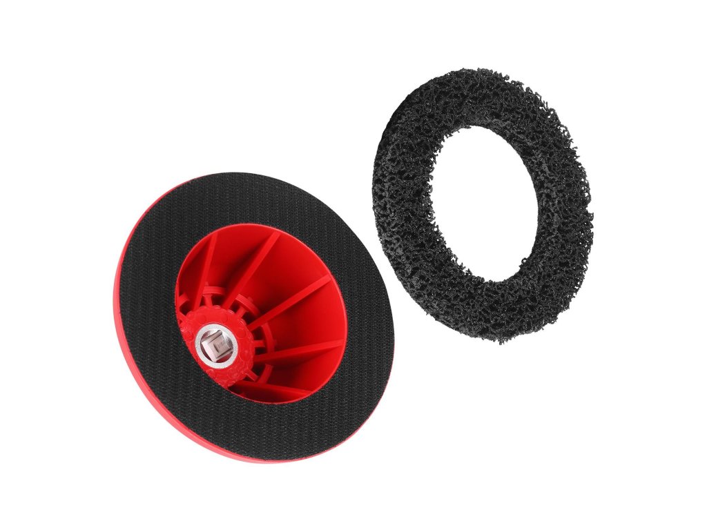 Díky upevnění 1/2" je kompatibilní s běžnými rázovými utahováky a vrtačkami. Pracovní průměr 150 mm umožňuje rychlé a účinné odstranění rzi, povlaků a nečistot bez rizika poškození povrchu. Ideální pomůcka pro přípravu ploch před montáží nových kotoučů nebo disků.