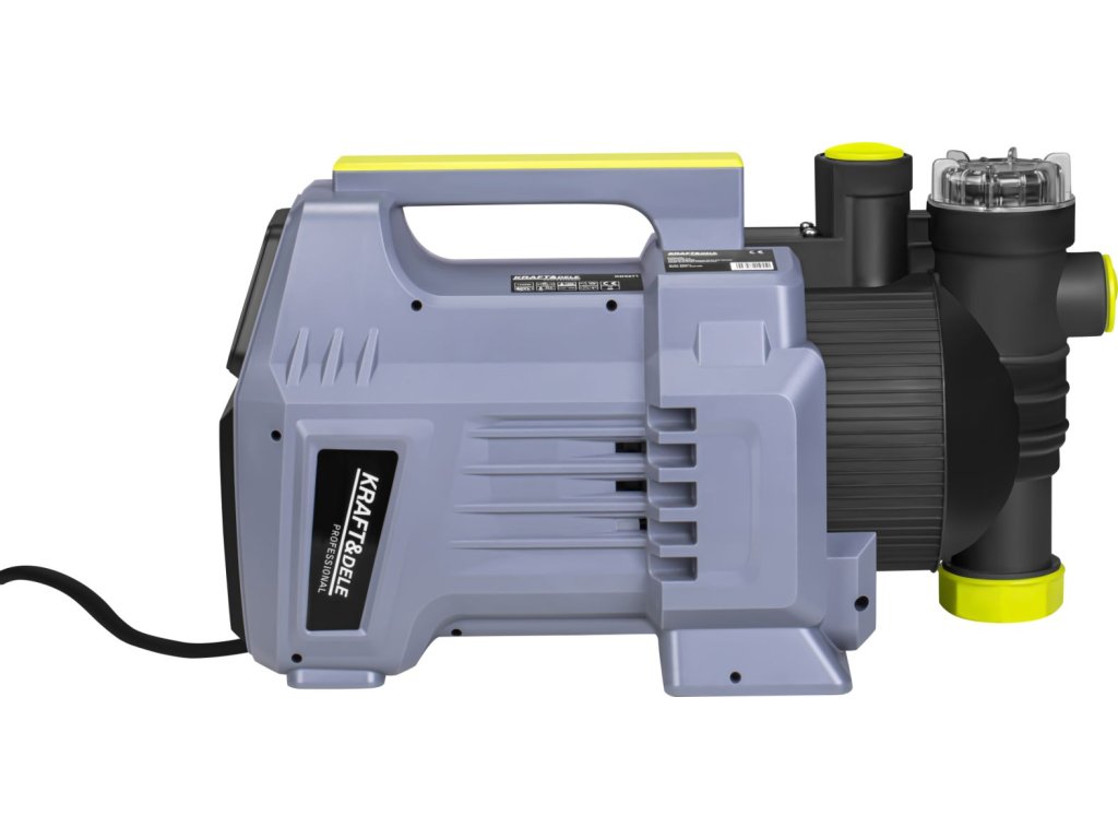 Čerpadlo na vodu Kraft&Dele KD5271 1500 W 4700 l/hKD5271 je výkonné zahradní čerpadlo značky Kraft&Dele o výkonu 1500 W, určené pro napájení zavlažovacích systémů a čerpání vody z přírodních i retenčních nádrží. Zařízení se skvěle hodí pro zavlažování zahrad, zeleninových záhonů, provoz trávníkových postřikovačů i pro zásobování užitkovou vodou.