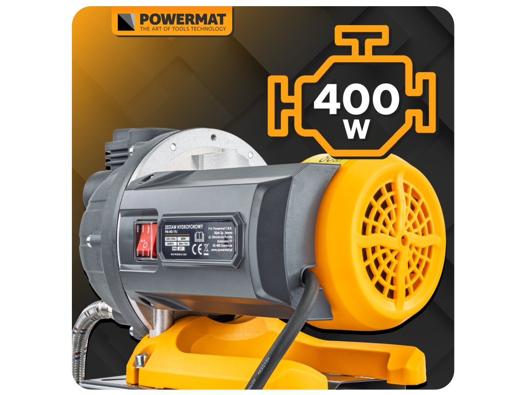 Domácí vodárna Powermat PM-HD-19J je výkonné a praktické řešení pro čerpání čisté nebo lehce znečištěné vody. Díky motoru o výkonu 400 W, automatickému tlakovému spínači a ocelové tlakové nádobě o objemu 19 litrů zajišťuje stabilní tlak vody a pohodlný provoz bez nutnosti ručního ovládání.