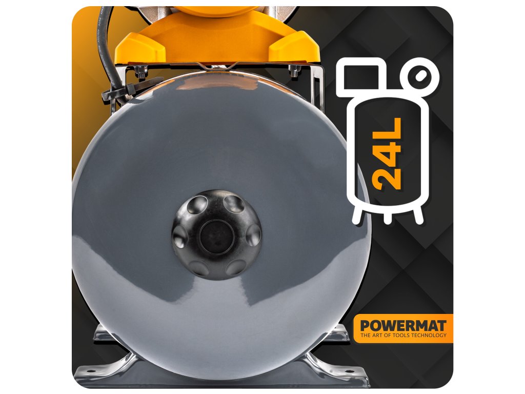 Domácí vodárna Powermat PM-HD-24J je silný a spolehlivý systém pro čerpání čisté nebo lehce znečištěné vody. Díky motoru o výkonu 900 W, velkému tlakovému zásobníku 24 litrů a automatickému presostatu poskytuje stabilní tlak vody i při intenzivním používání. Ideální pro zavlažování, zásobování domácnosti nebo čerpání ze studní a nádrží.