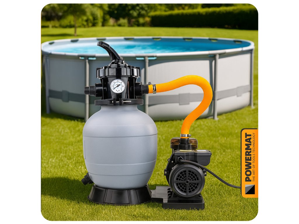 Písková filtrace Powermat PM-PPDB-400J je výkonné zařízení určené pro filtraci vody v zahradních bazénech. Díky výkonu 400 W a maximálnímu průtoku až 10 000 l/h zajišťuje efektivní cirkulaci a čištění vody ve středních i větších bazénech. Filtrace může pracovat s křemičitým pískem nebo filtračními kuličkami, které spolehlivě zachytávají nečistoty a pomáhají udržet vodu dlouhodobě čistou.