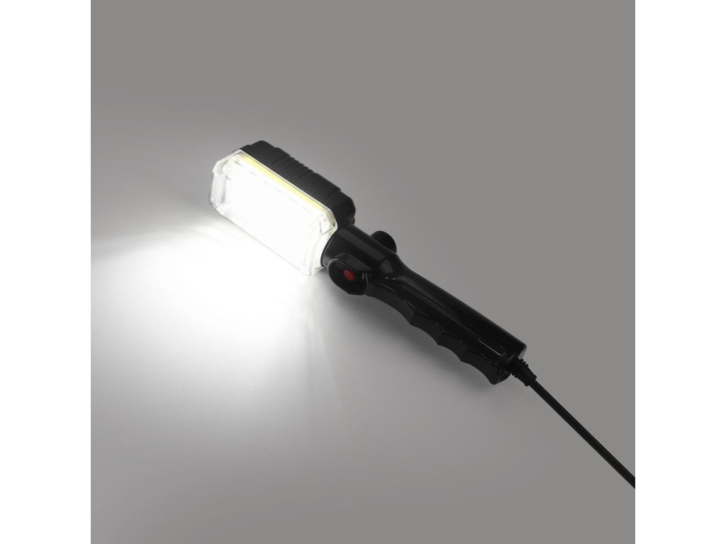 Odolná konstrukce z ABS a PC zajišťuje vysokou odolnost proti mechanickému poškození. Napájecí kabel o délce 5 metrů umožňuje pohodlný dosah a flexibilní použití. Pro větší praktičnost je svítilna vybavena háčkem k zavěšení a zadním magnetem, který usnadňuje uchycení na kovových plochách.