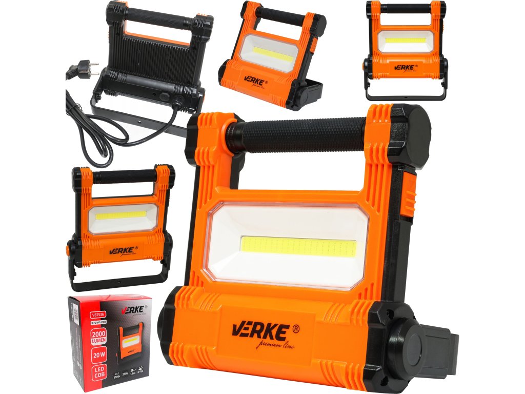 Díky použití technologie LED COB lampa poskytuje mnohem více světla ve srovnání s tradičními lampami a je mnohem úspornější. Reflektor je určen k osvětlení pracovního místa v dílně, na stavbě nebo v garáži. Dioda COB o výkonu 20W vytváří světelný tok 2000 lm. Lampa má nastavitelný držák na stativ s tlačítkem pro zablokování úhlu náklonu. Produkty firmy Verke jsou v Polsku známé díky vynikající kvalitě provedení a autentickým parametrům.