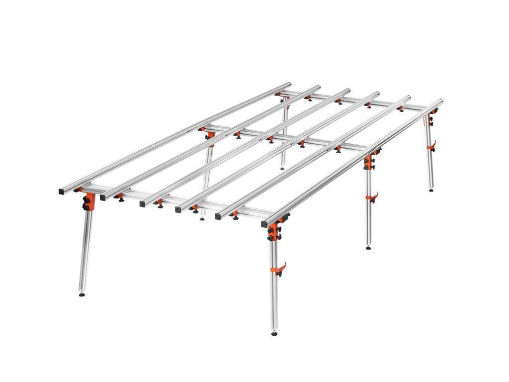 Pracovní stůl KD11983 je pevná a stabilní konstrukce určená pro zpracování velkoformátových desek. Díky rozměrům 360 × 150 × 80 cm nabízí dostatečně velkou pracovní plochu, která umožňuje pohodlné a bezpečné provádění montážních prací, řezání i finálních úprav. Vyroben z odolného hliníku a oceli, což zaručuje dlouhou životnost a odolnost proti intenzivnímu používání.