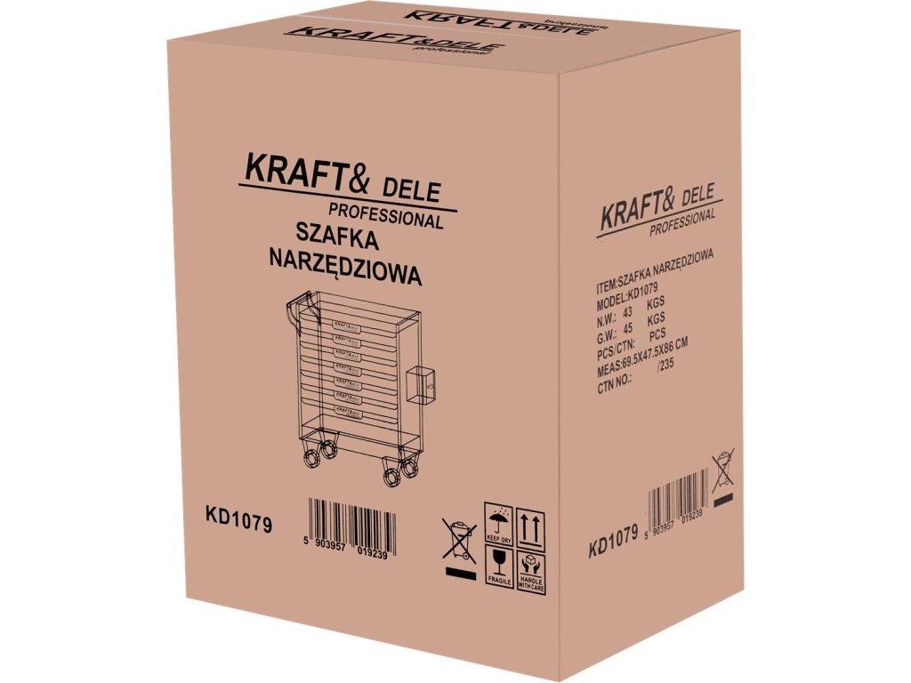 Profesionální dílenská skříňka KRAFT&DELE KD1079 je spolehlivým a funkčním řešením pro přehledné ukládání nářadí a příslušenství. Je vybavena 7 prostornými zásuvkami s pěnovou výstelkou, které chrání nářadí před poškozením a umožňují udržovat pořádek.