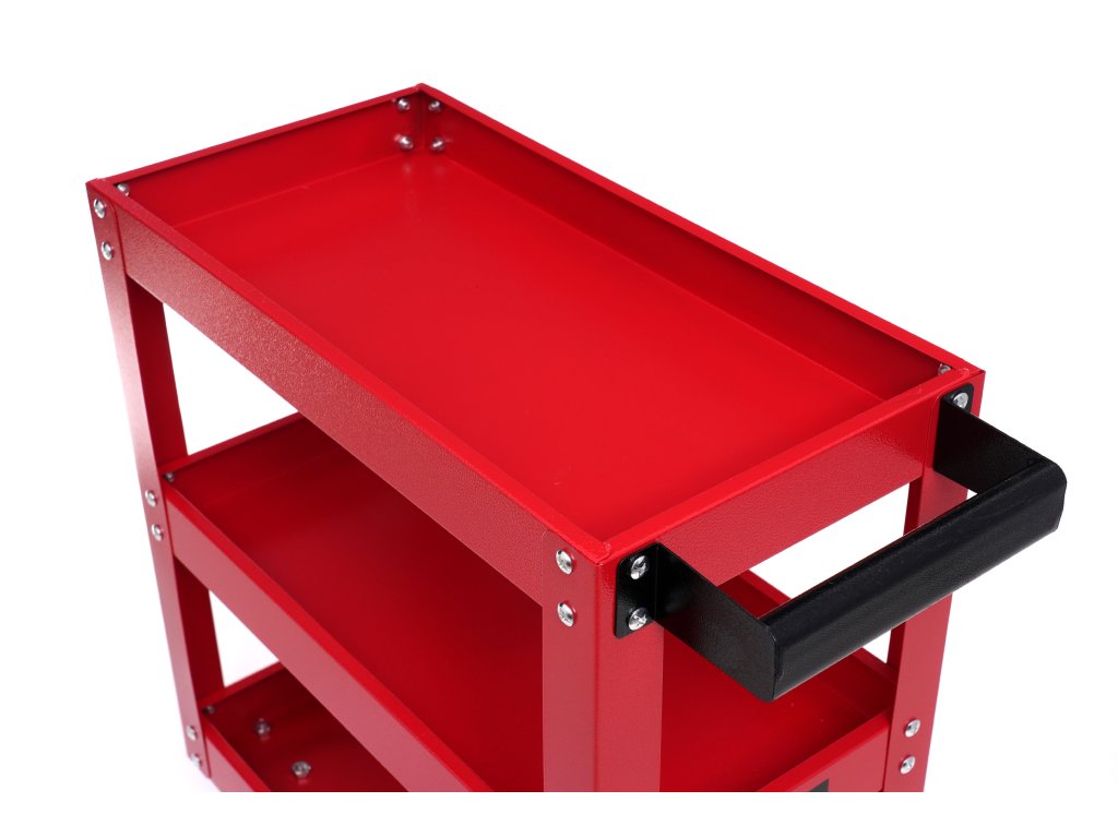 Vozík je vybaven třemi policemi o hloubce 4,5 cm, které poskytují dostatek prostoru pro organizaci nářadí a materiálů.
