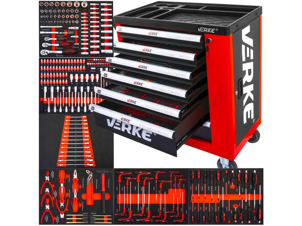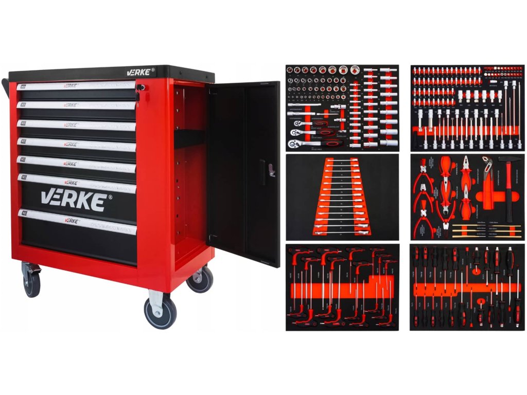 Dílenský vozík s nářadím 7+1 Eva Red, Verke V33107