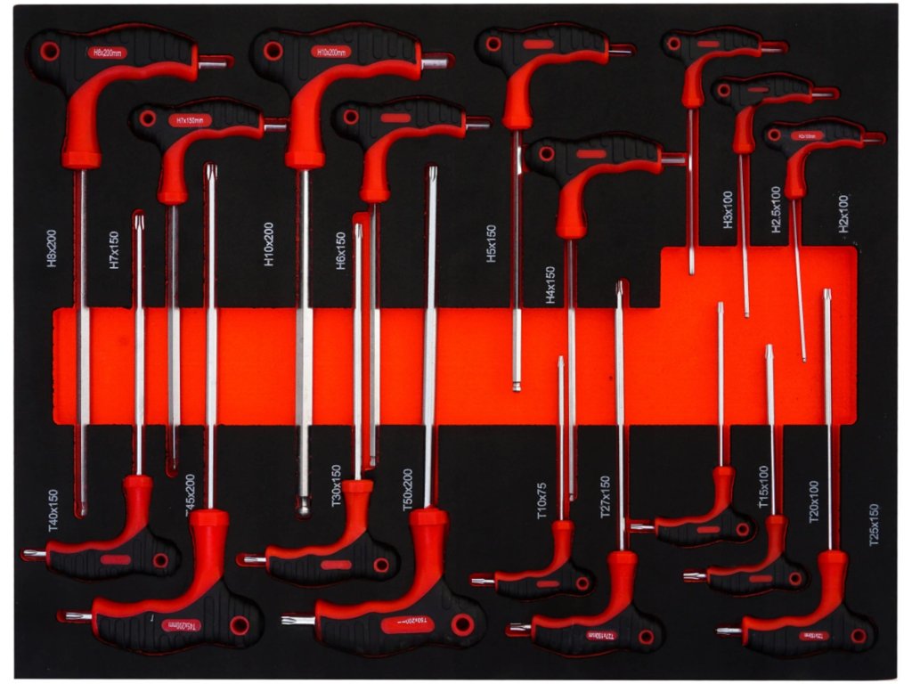 - 10x L-šroubováky torx (T40150, T45200, T30150, T50200, T1075, T27150, T15100, T20100, T25*150)