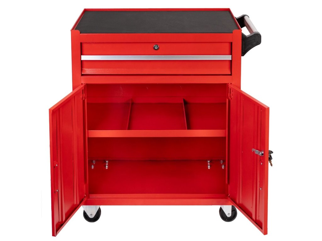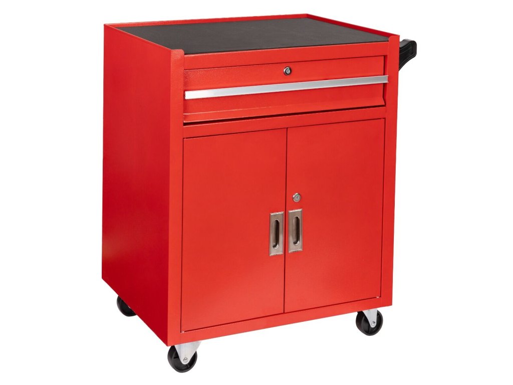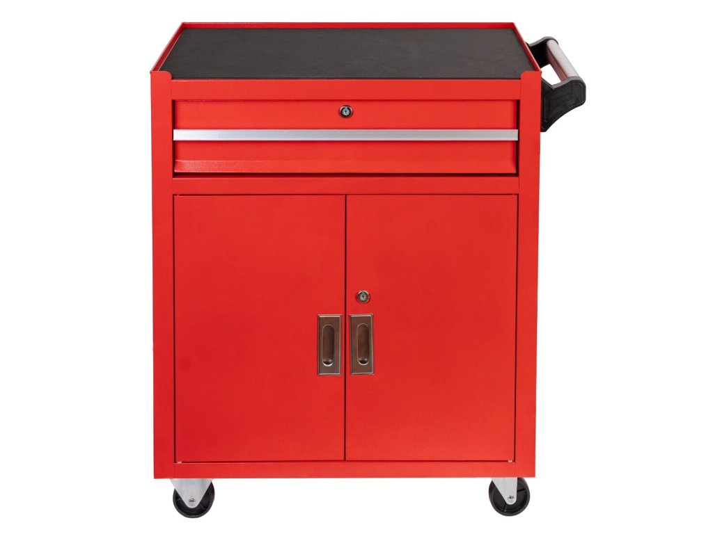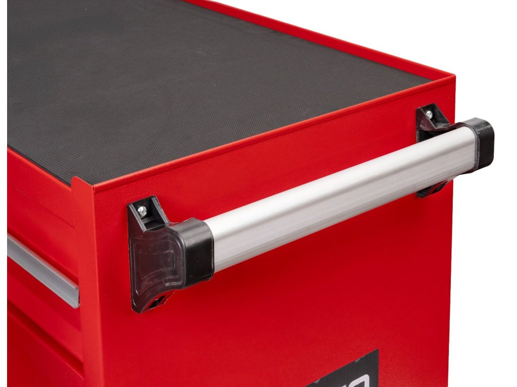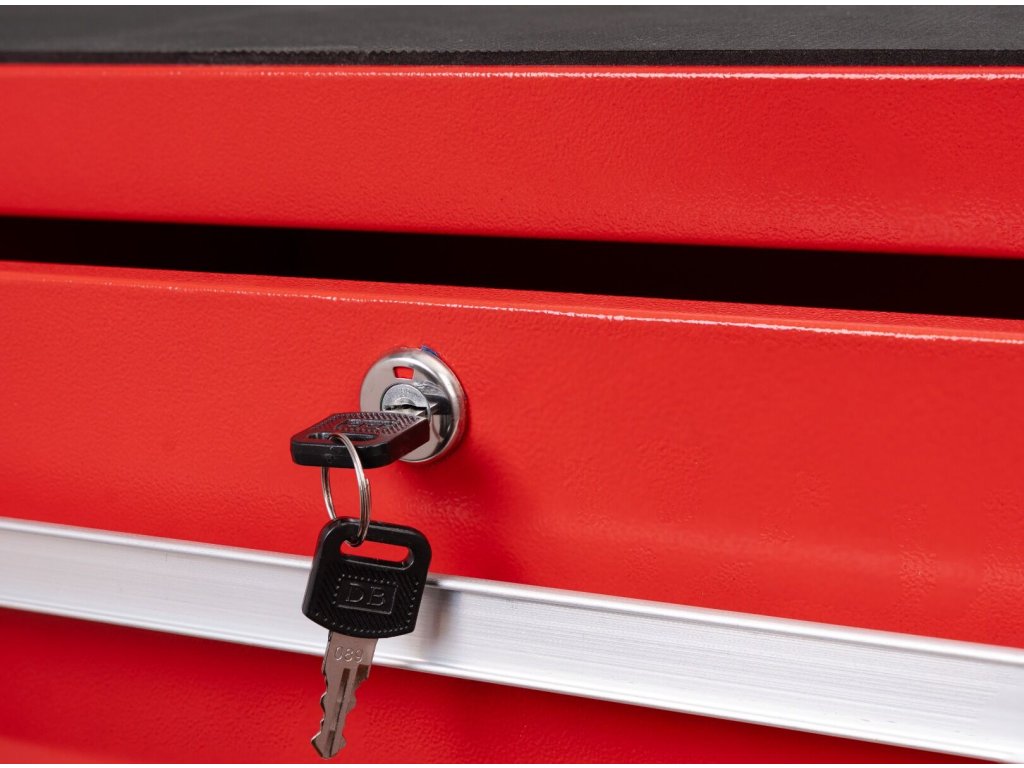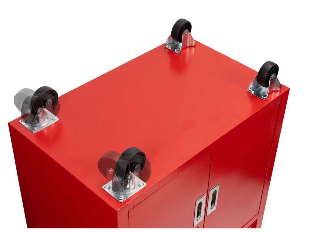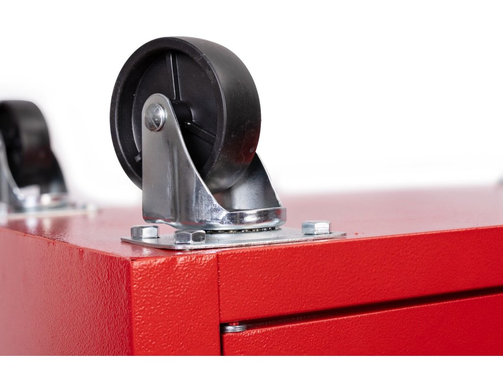 Vozík je vybaven čtyřmi koly a ergonomickým madlem, které umožňují snadné přemisťování i při plném zatížení. Díky dvěma nezávislým zámkům lze samostatně zabezpečit horní zásuvku a spodní skříňku.