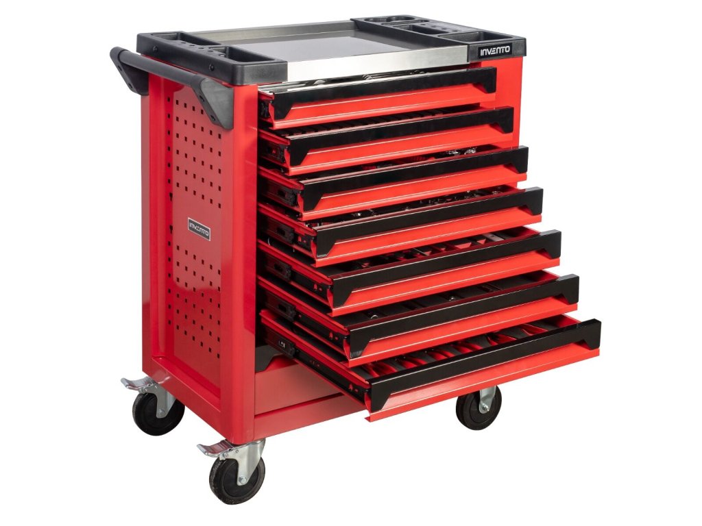 Dílenský vozík Invento TRUCK INVTT220-8 je komplexním řešením pro profesionální autoservisy i náročné uživatele. Obsahuje 220 kusů nářadí uložených v osmi vyztužených zásuvkách, které jsou přizpůsobeny pro práci v náročných podmínkách při opravách osobních i nákladních vozidel.