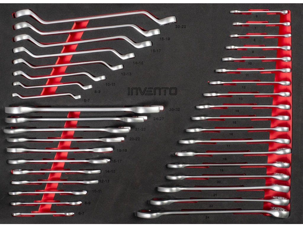 - ploché dvojité klíče – 6–7 8–9 10–11 12–13 14–15 16–17 18–19 20–22 21–23 24–27 30–32 mm