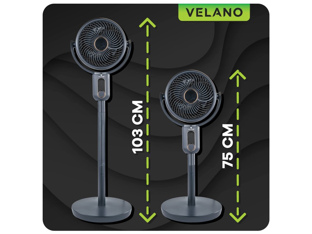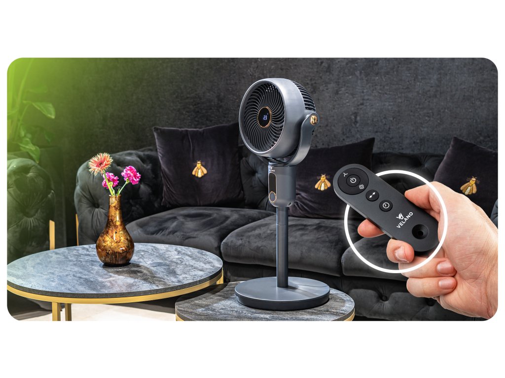 Podlahový ventilátor Velano VELWEP0013 je výkonné a komfortní zařízení s mocným 50W motorem, třemi režimy proudění vzduchu a dálkovým ovládáním. Díky funkci oscilace, regulaci výšky a tichému chodu je ideální pro každodenní použití doma i v kanceláři.