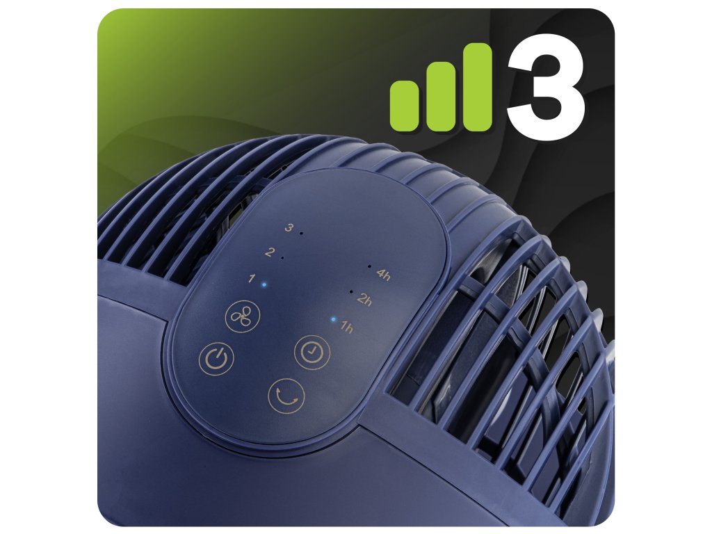 - 3 rychlosti proudění vzduchu – nízká, střední a vysoká intenzita pro přizpůsobení individuálním potřebám uživatele.