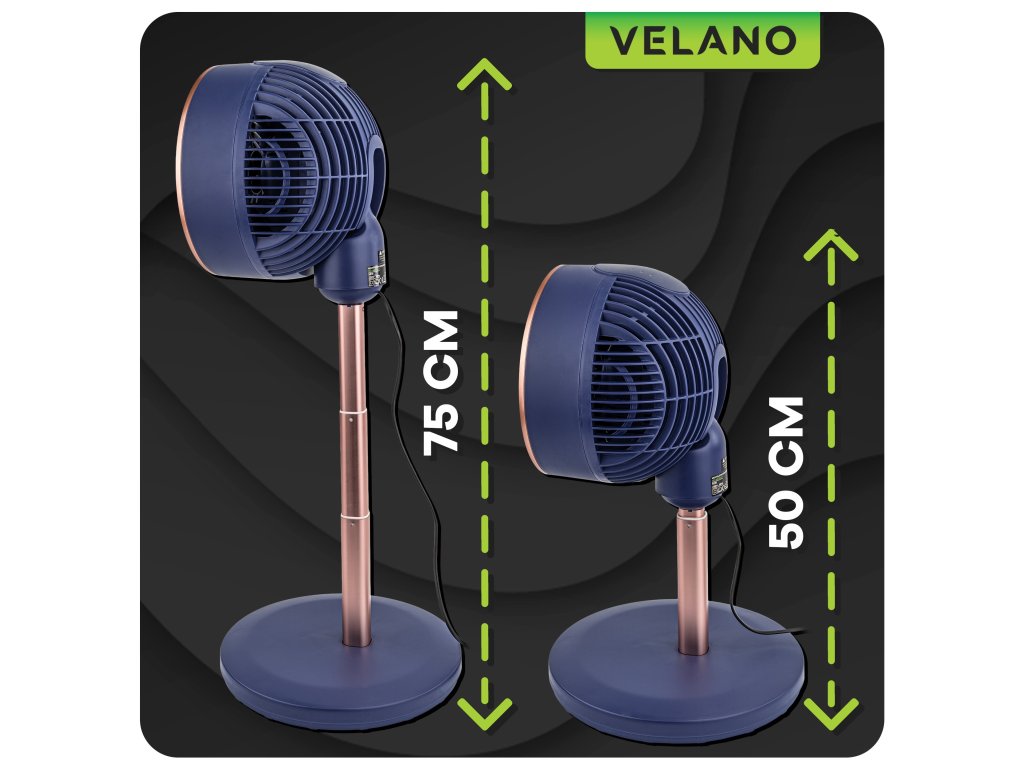 Podlahový ventilátor Velano VELWEP0017 je moderní zařízení, které spojuje vysoký výkon s funkčností a komfortem používání. Je vybavený silným motorem o výkonu 50 W, funkcí oscilace, regulací rychlosti a časovačem do 7 hodin, což zajišťuje efektivní chlazení a tichý chod. Navíc disponuje funkcí aromaterapie, která umožňuje šíření příjemné vůně v místnosti.