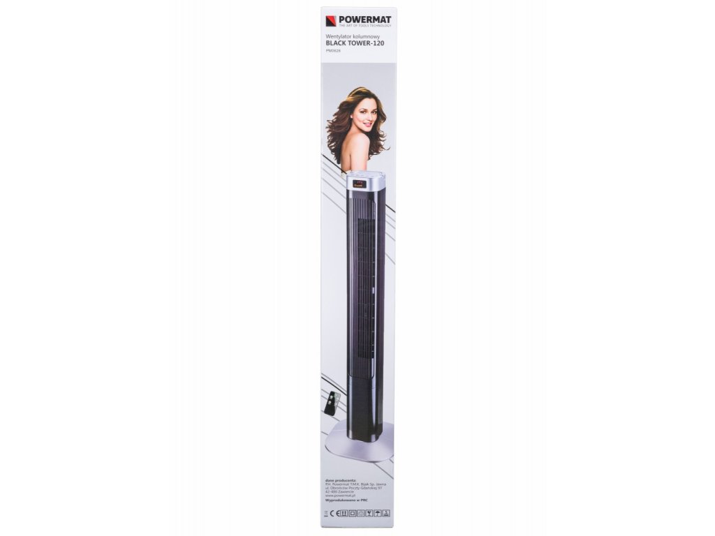 Ventilátor sloupový 121cm, 90W s dálkovým ovládáním Powermat Black Tower-120, Powermat PM0626