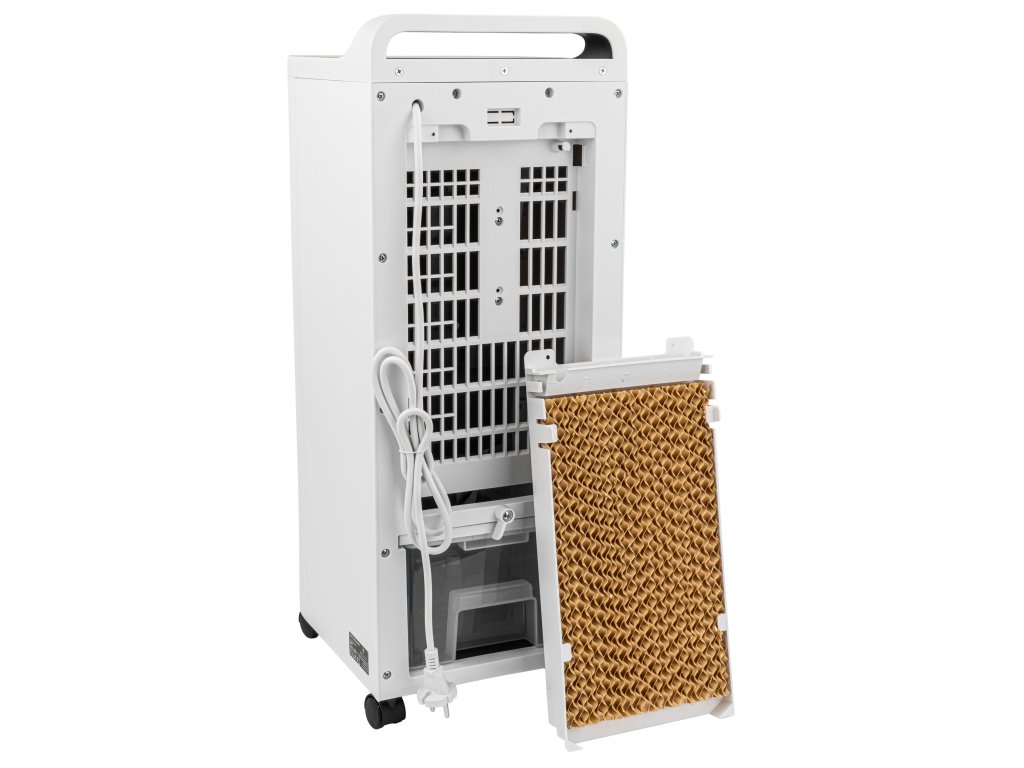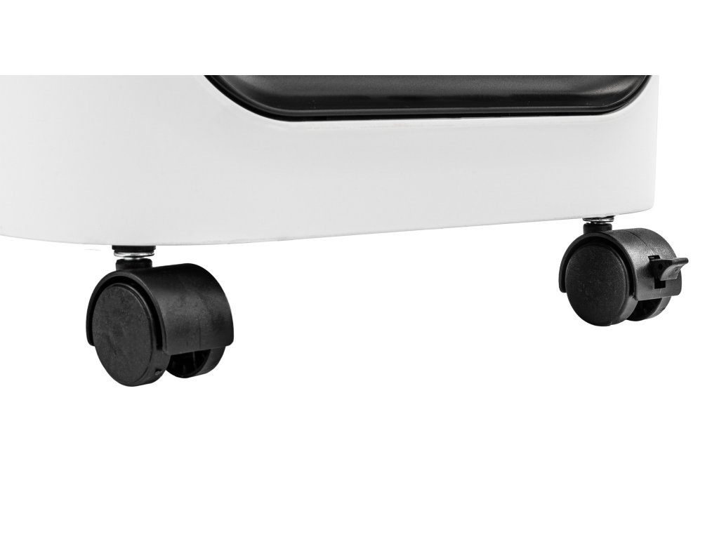 Integrovaný časovač umožňuje nastavit automatické vypnutí po 1, 2 nebo 4 hodinách. Díky praktickému madlu a kolečkům je zařízení snadno přenosné.