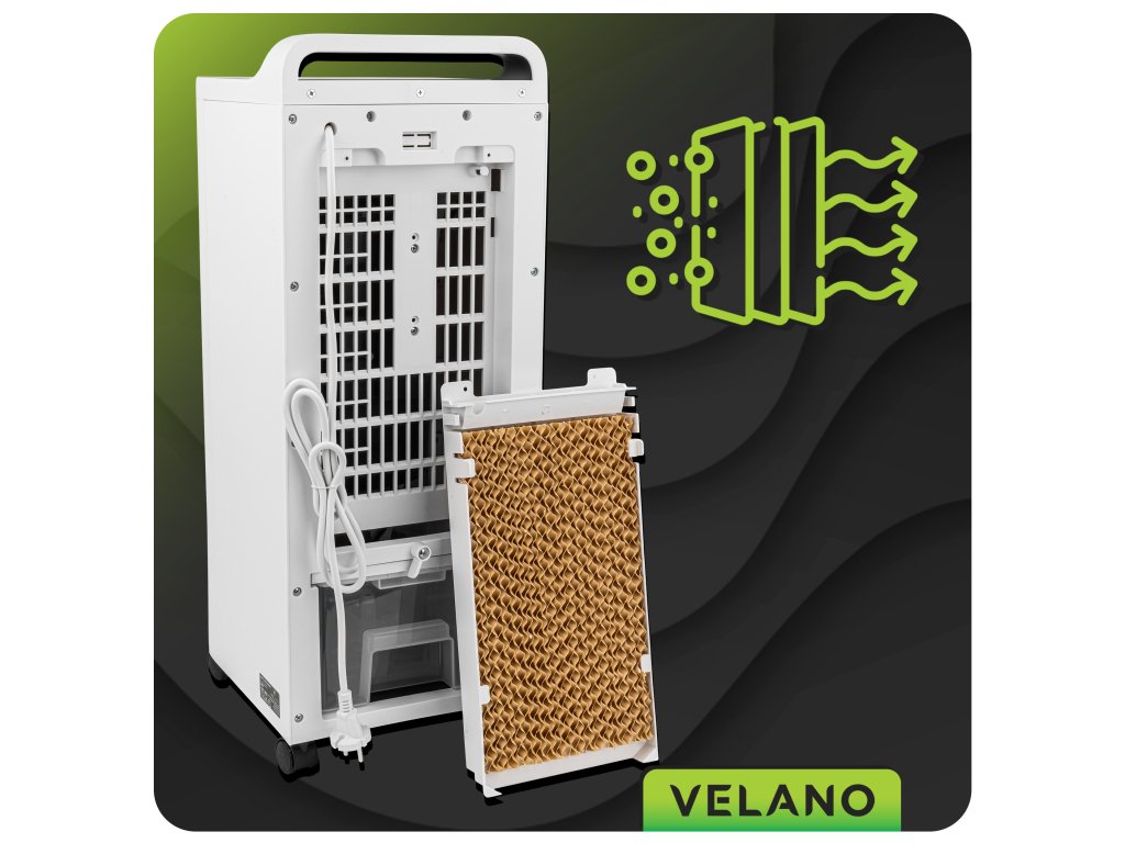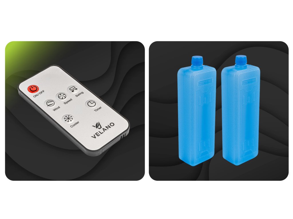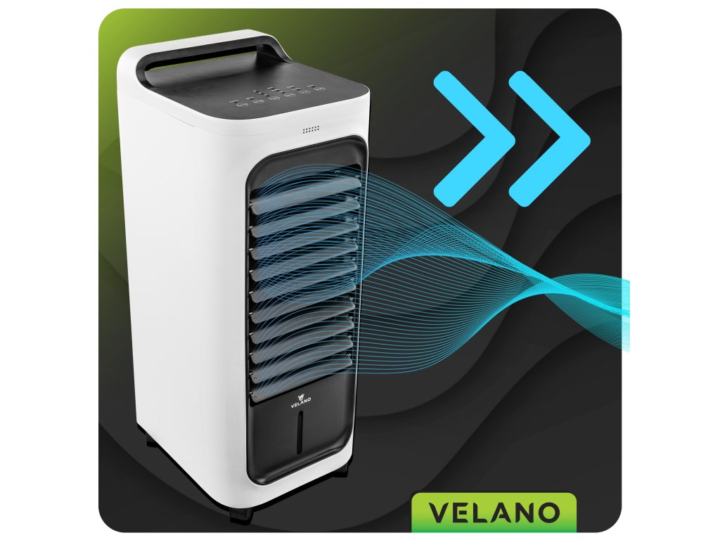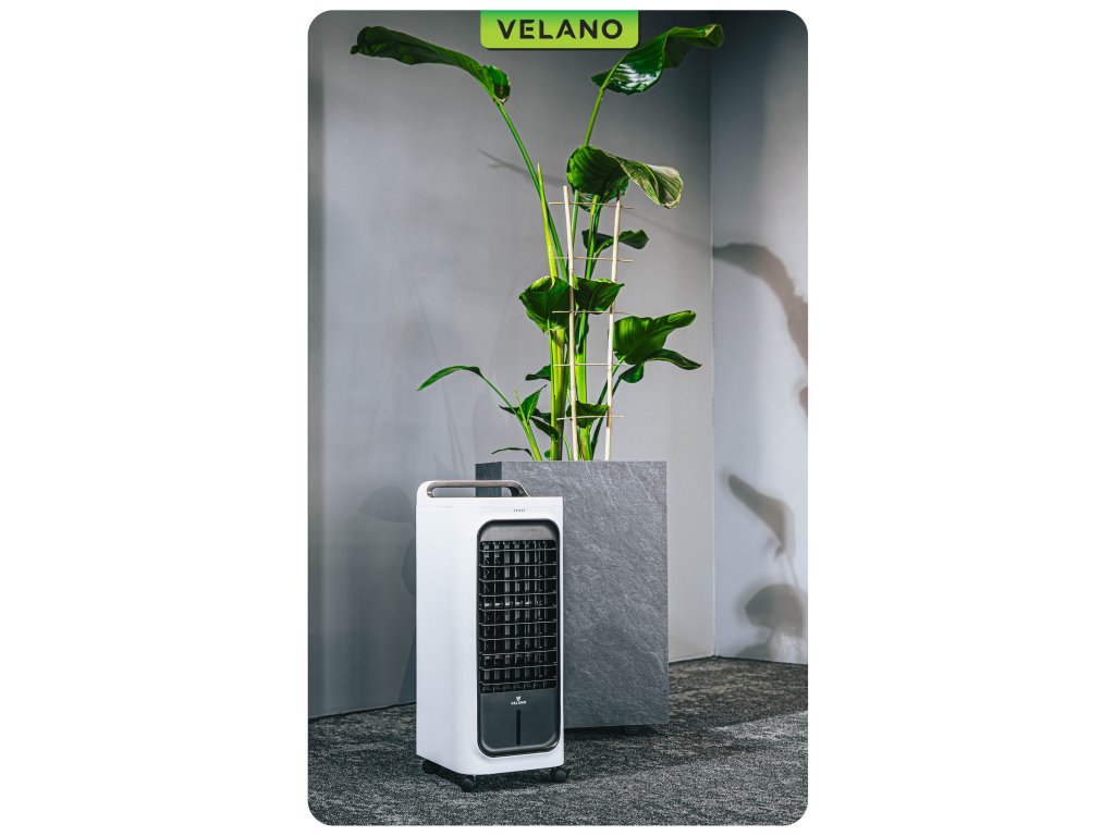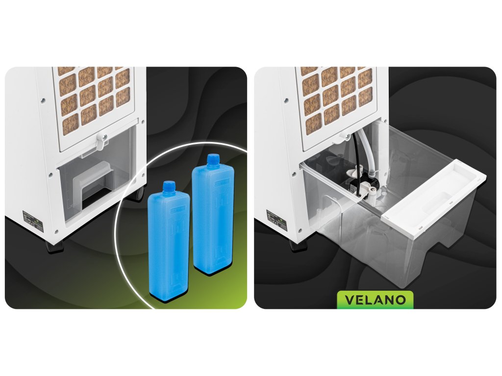 Ventilátor Velano využívá systém vodního chlazení, který účinně snižuje teplotu v místnosti. Do nádržky stačí nalít vodu, přičemž pro silnější efekt lze použít přiložené chladicí vložky.
