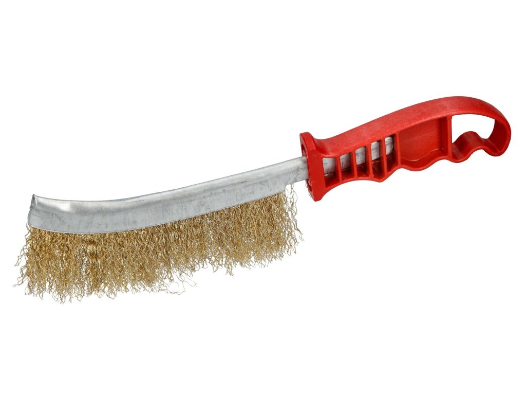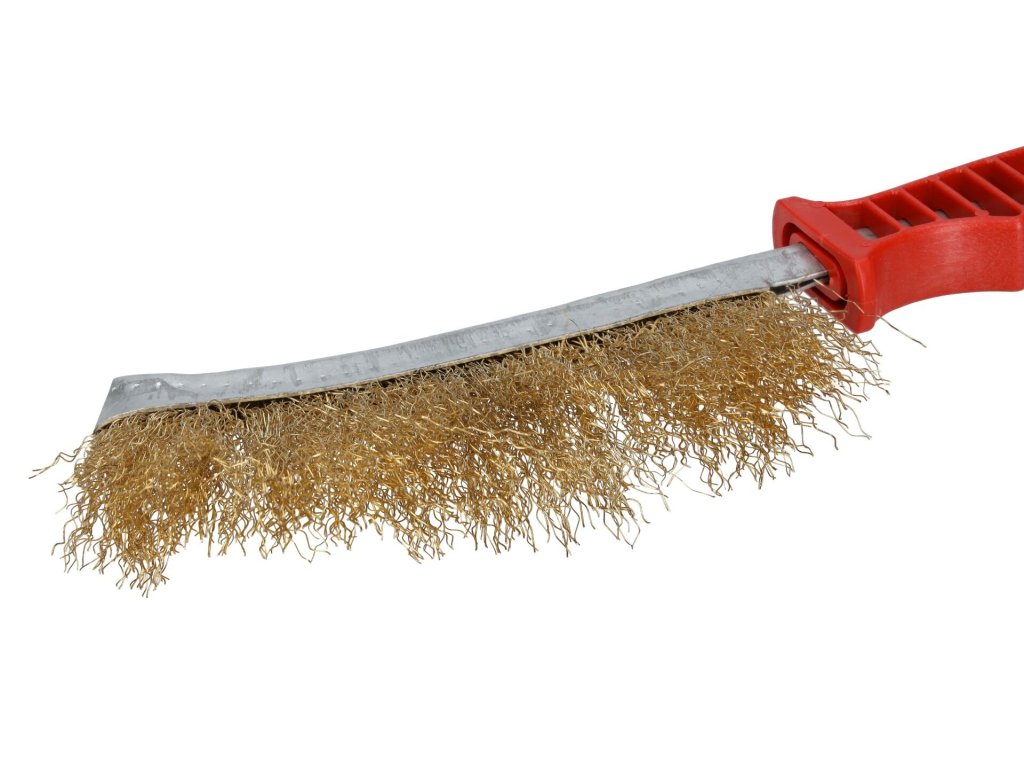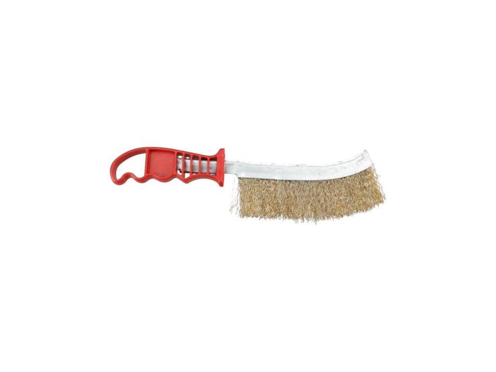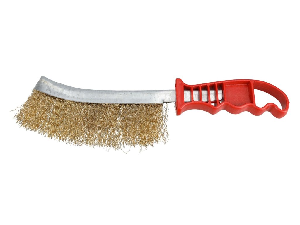 Kartáč je vyroben z vysoce kvalitního, zvlněného mosazovaného drátu, který účinně odstraňuje barvu, lak, rez, otřepy nebo mech ze spár dlažby. Ergonomicky tvarovaná rukojeť z odolného plastu zajišťuje jistý úchop a pohodlnou práci bez rizika vyklouznutí z ruky.