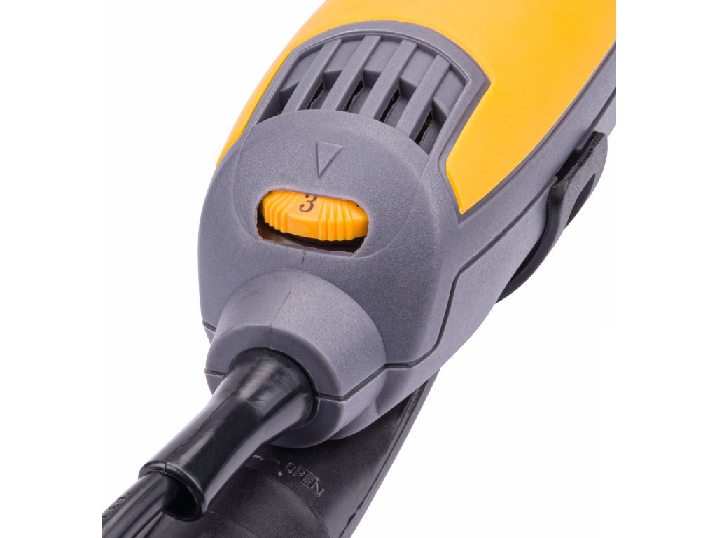 - Plynulá regulace otáček pomocí otočného ovladače umožňuje přizpůsobit výkon konkrétnímu typu práce a materiálu.