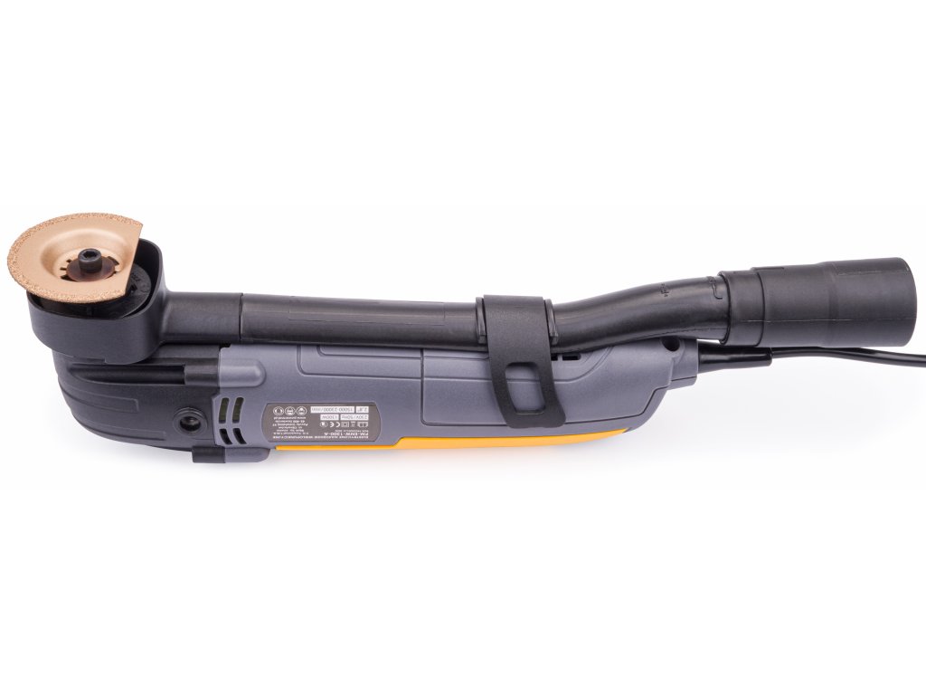 - Výkonné multifunkční nářadí o příkonu 1300 W určené pro širokou škálu úkonů – řezání, broušení, škrábání, čištění a opracování různých materiálů (dřevo, kov, keramika, plast).