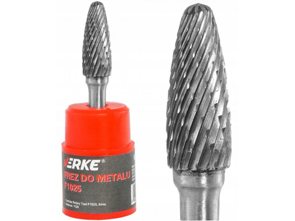 Fréza H1232 VERKE má dvojité šikmé zuby určené pro univerzální použití. Vytváří krátké třísky, které se snadno odvádějí, a umožňuje rovnoměrnou práci při obrábění tvárné oceli. Ideální pro tvarování, vyhlazování a odstraňování materiálů, jako jsou kalená ocel (HRC65), nerezová ocel, litina, barevné kovy, keramika, plasty a dřevo. Fréza je vyrobena z karbidu wolframu, který se vyznačuje nejvyšší teplotou varu (6000 °C) a vysokou odolností.