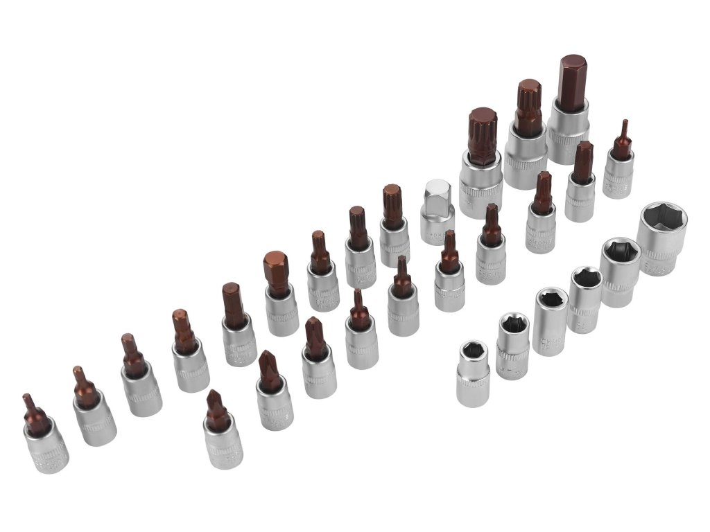 - Nástavce typu bit 1/4": T10, T15, T20, T25, T30, H2, H2.5, H3, H4, H5, H6, H8, PH1, PH2, PH3, M5, M6, M8