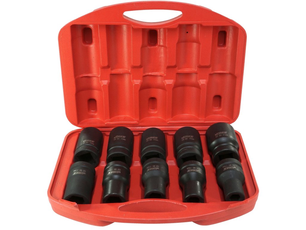 Sada dlouhých rázových hlavic je nezbytným nástrojem při pracích v každém profesionálním servisu a automobilové dílně. Sada obsahuje 10 hlavic různých velikostí určených pro pneumatické klíče. Jsou vyrobeny z nejkvalitnější chrom-molybdenové legované oceli CR-MO, což zajišťuje jejich odolnost a dlouhou životnost. Díky tepelnému zpracování byla snížena křehkost materiálu a dosaženo vysoké tvrdosti, což hlavicím poskytuje odolnost vůči mechanickému poškození a korozi. Sada je dodávána v praktickém a pohodlném kufříku.