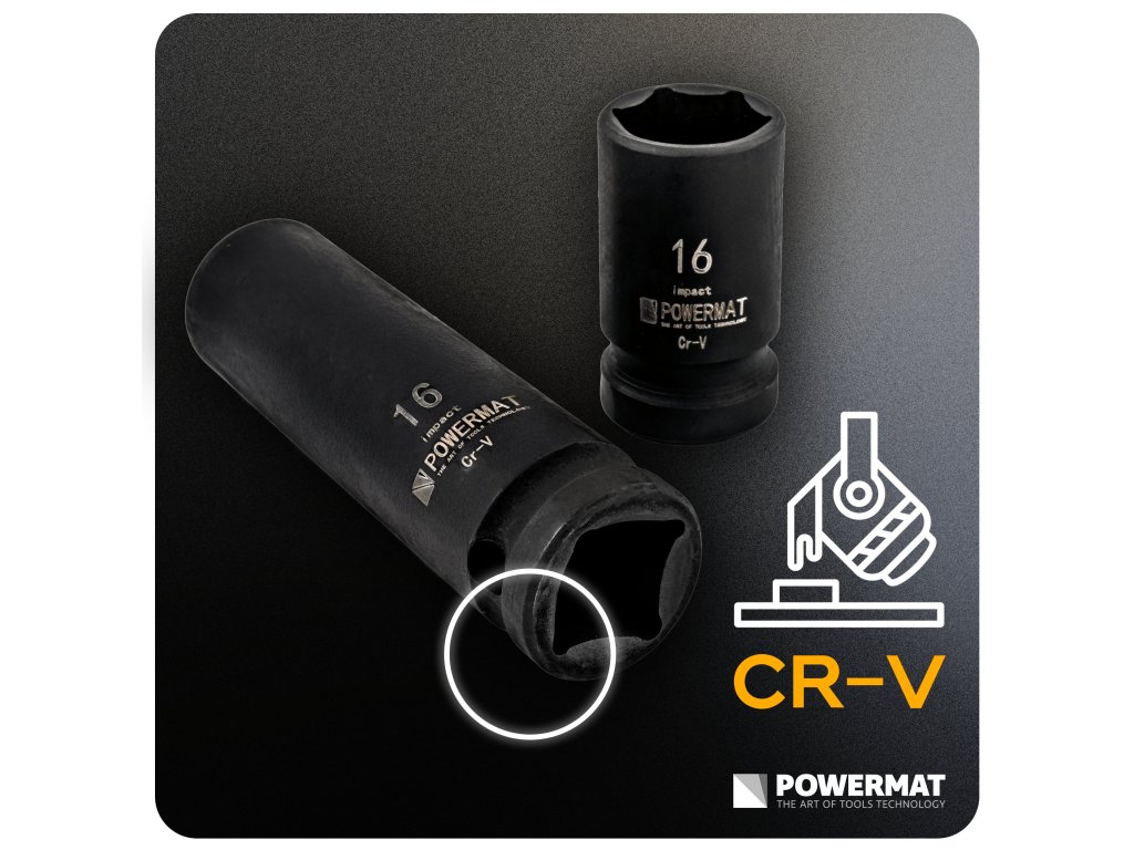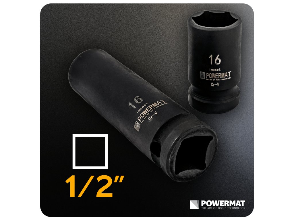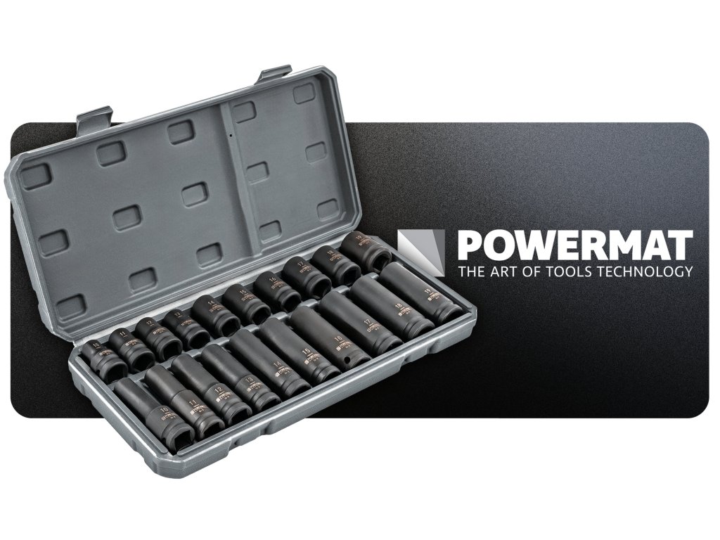 Nástrčné rázové hlavice 1/2" dlouhé, krátké PM-ZNU-1019T, sada 20ks, Powermat PM1385