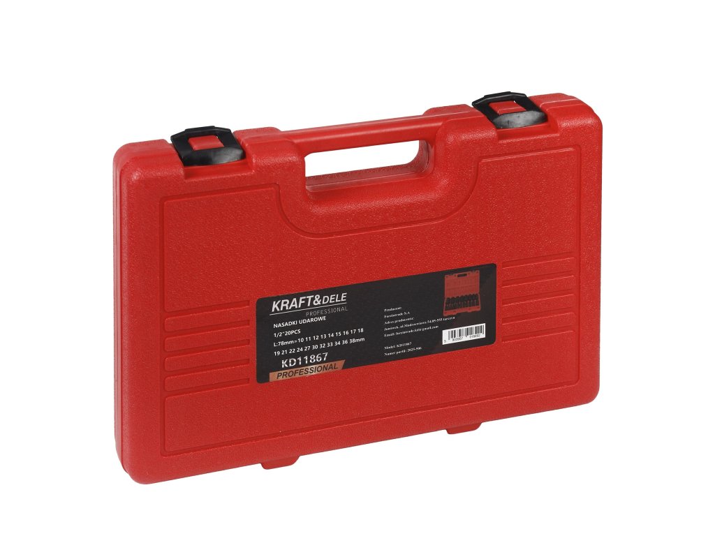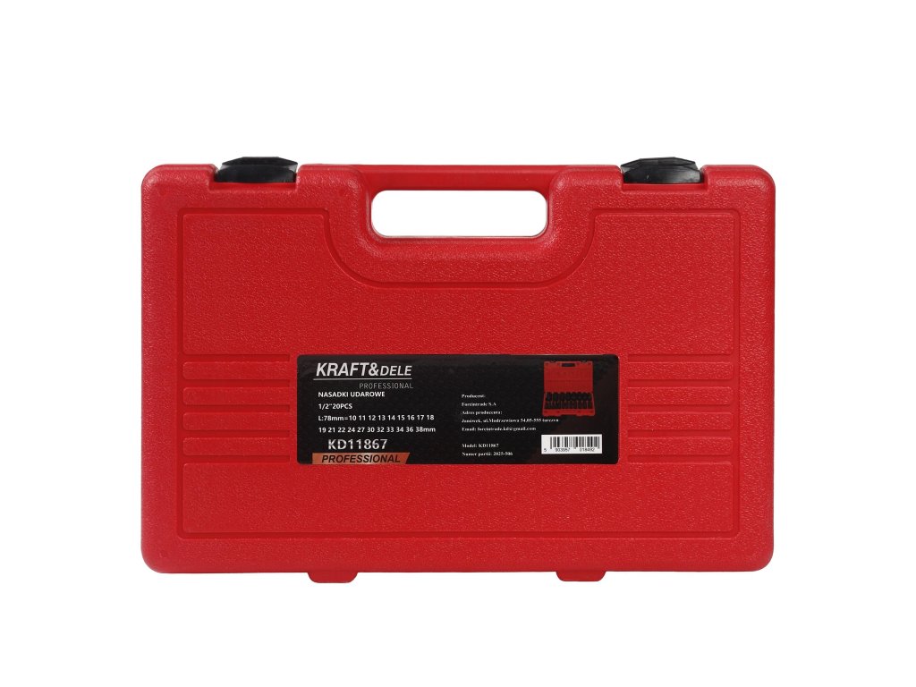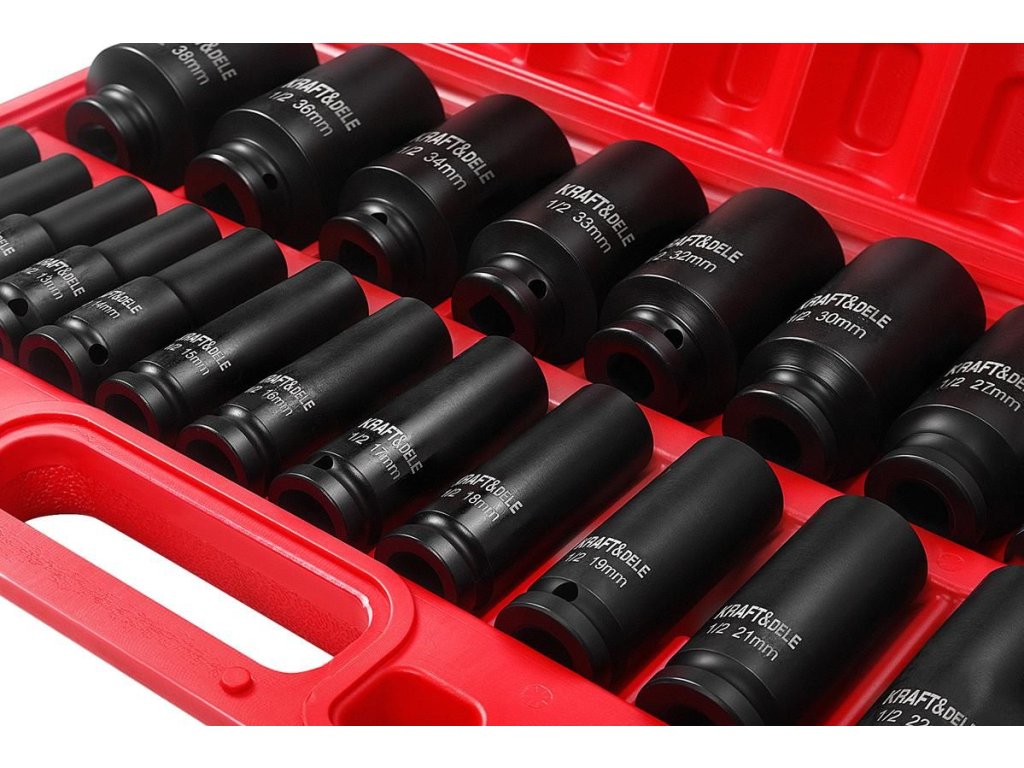 Profesionální sada Kraft&Dele KD11867 obsahuje 20 rázových hlavic určených pro práci s pneumatickými i elektrickými rázovými utahováky. Hlavice jsou vyrobeny z vysoce odolné chrom-molybdenové oceli (Cr-Mo), která zajišťuje maximální pevnost, vysokou odolnost vůči zatížení a dlouhou životnost při intenzivním používání.