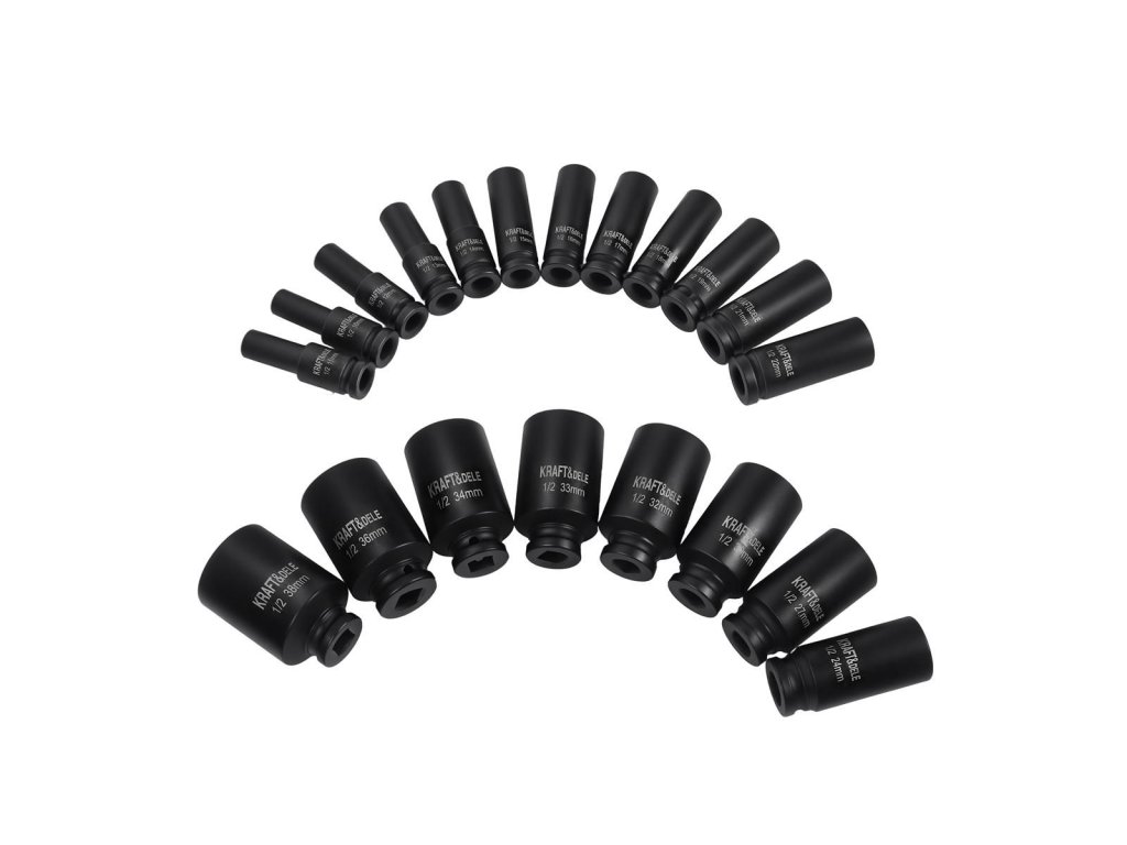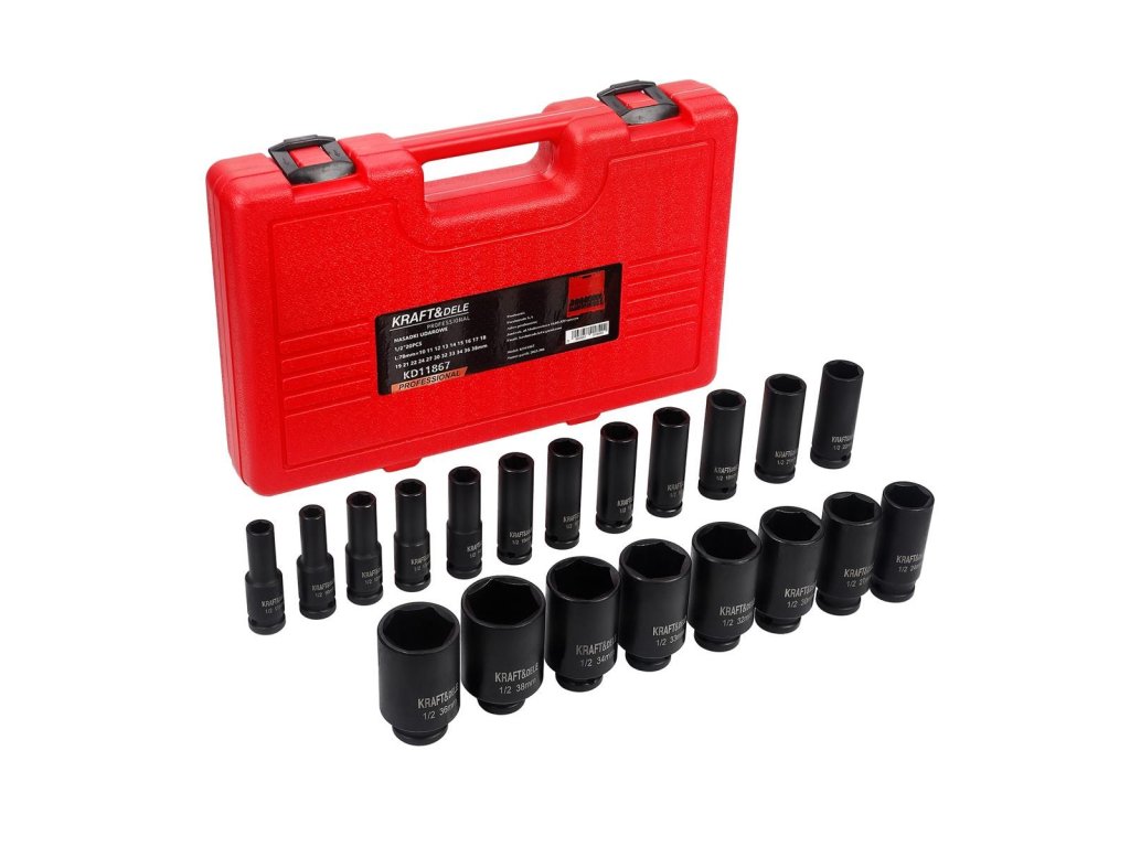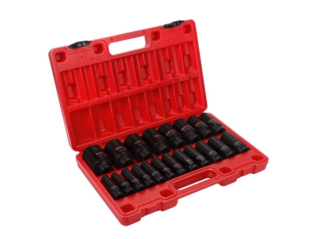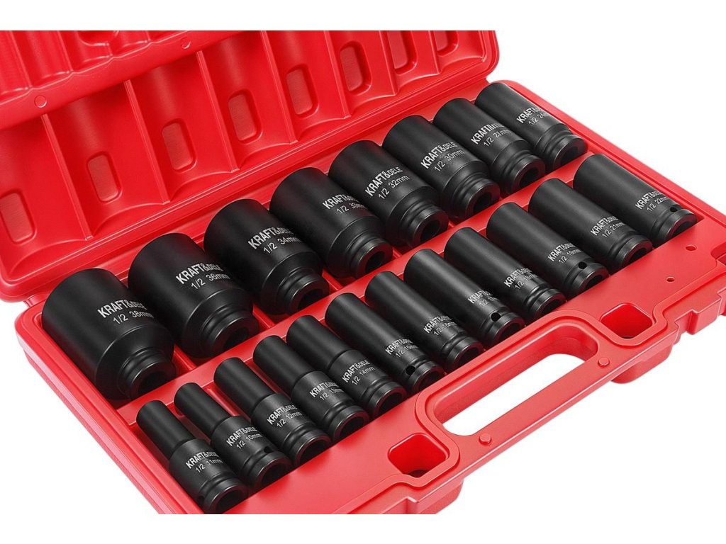 Nástrčné rázové hlavice 1/2" dlouhé, sada 20ks, Kraft&Dele KD11867
