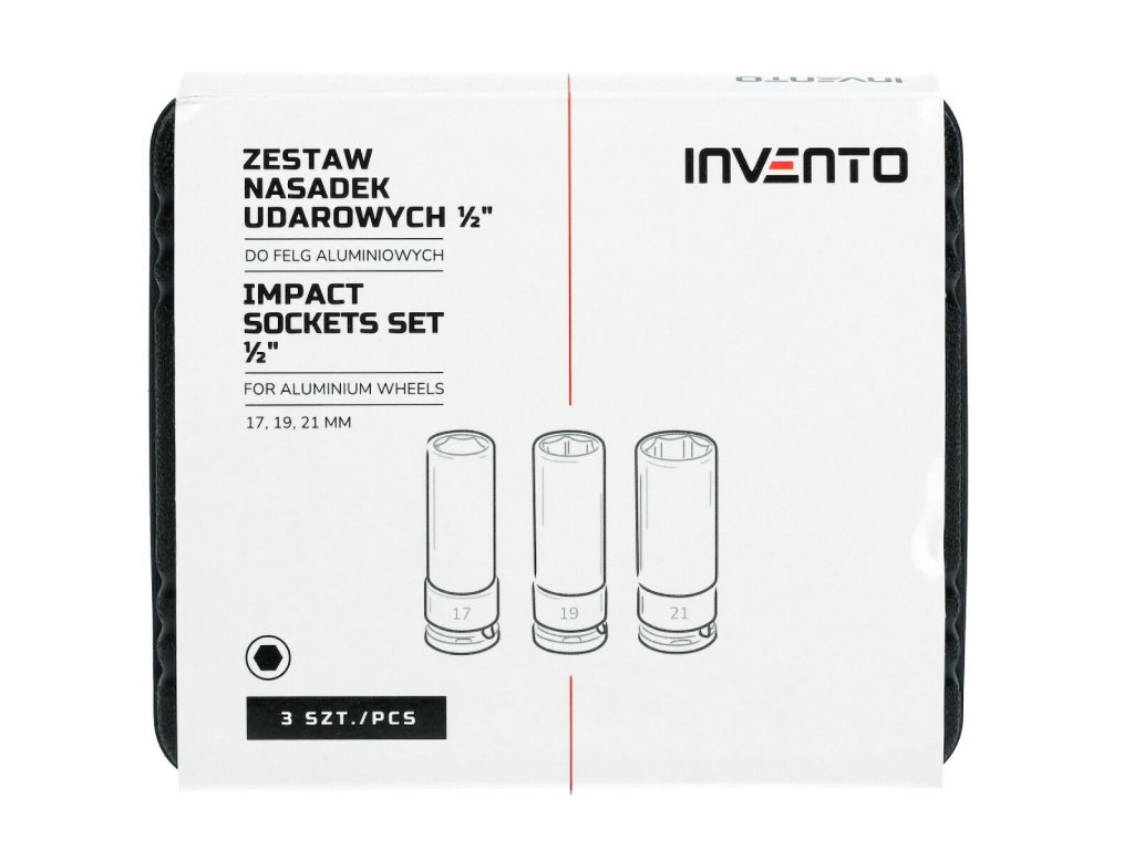 Nástrčné rázové hlavice 1/2" na ALU disky 17, 19, 21 mm, Invento INVNAS3