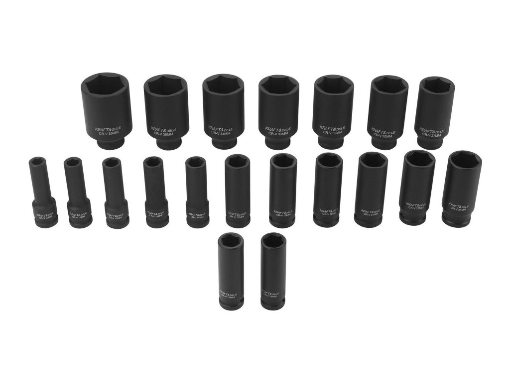 Nástrčné rázové hlavice dlouhé 1/2", 6-ti hran, 10-38mm, sada 20 ks, Kraft&Dele KD11794